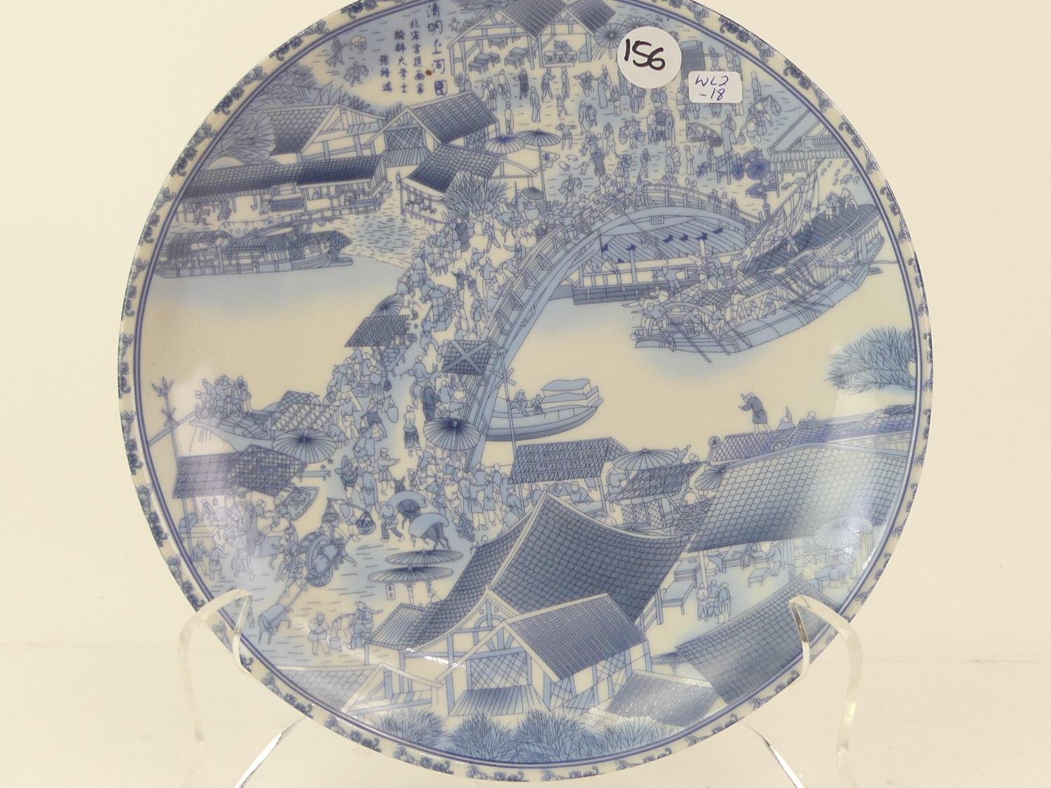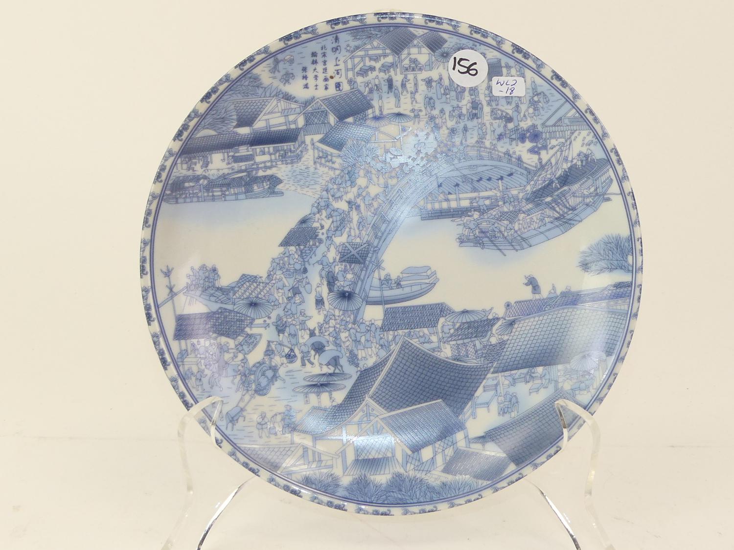 chinese blue and white river bridge plate, diemater 9 1/2"