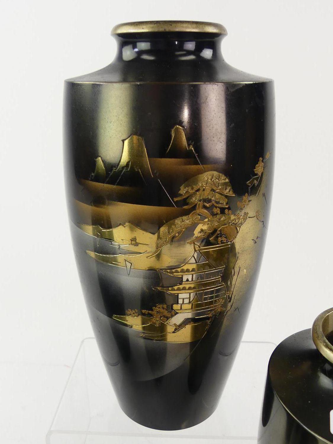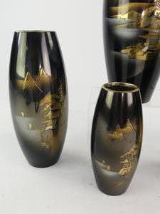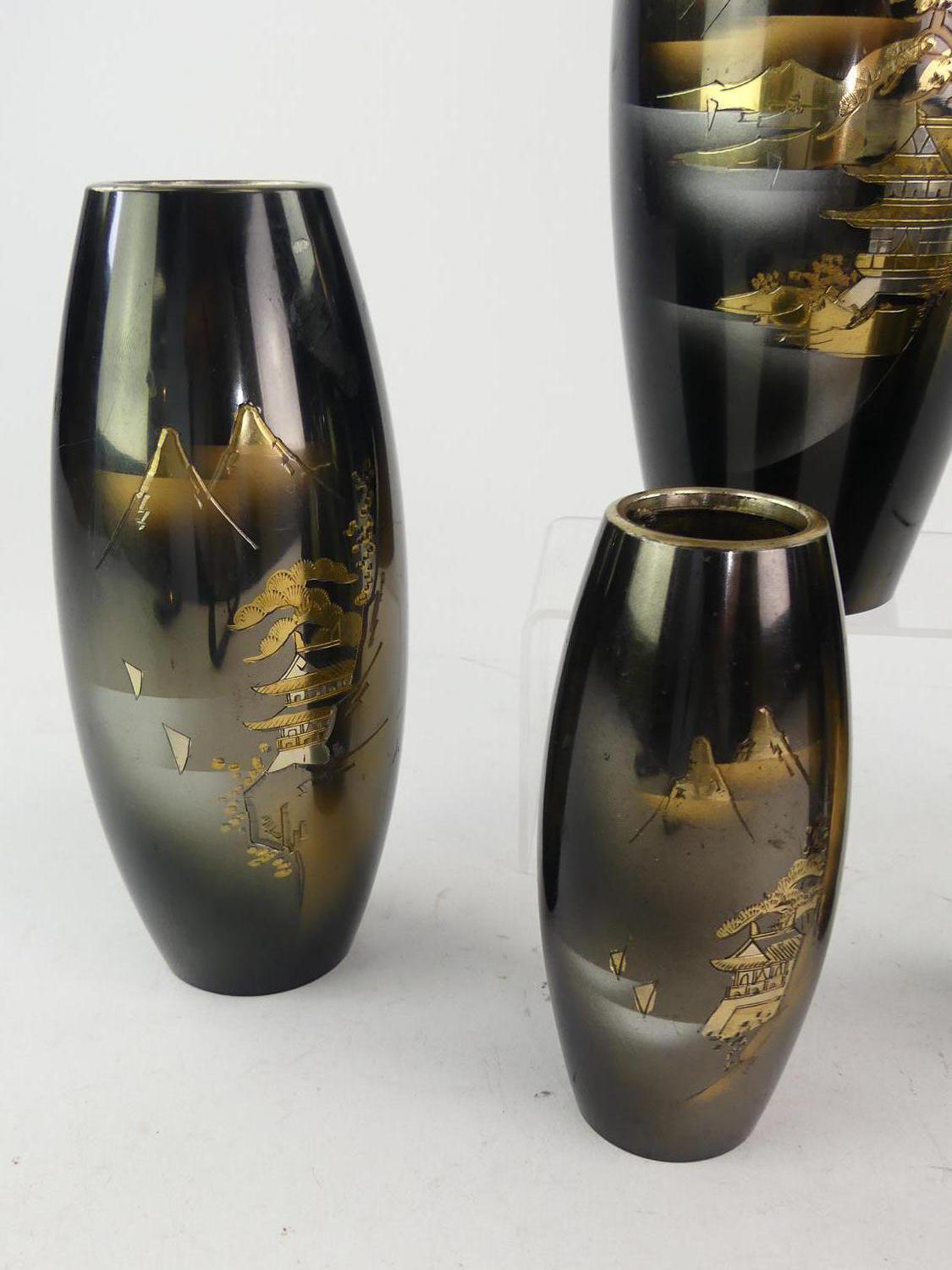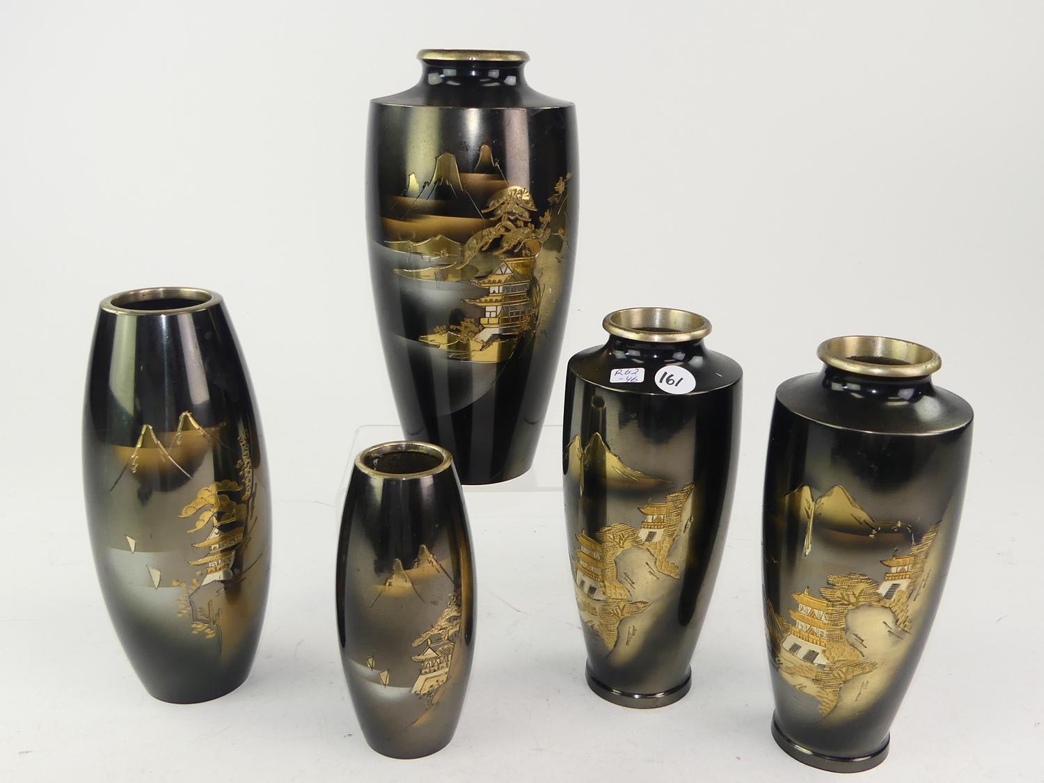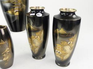 lot of five japanese metal work vases
