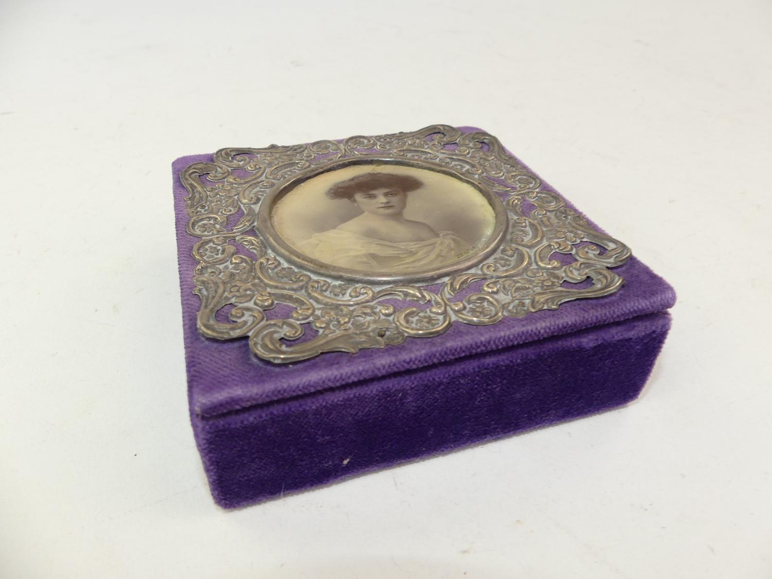 art nouveau sterling silver mounted dresser box, 4 1/4" x 4 1/4"