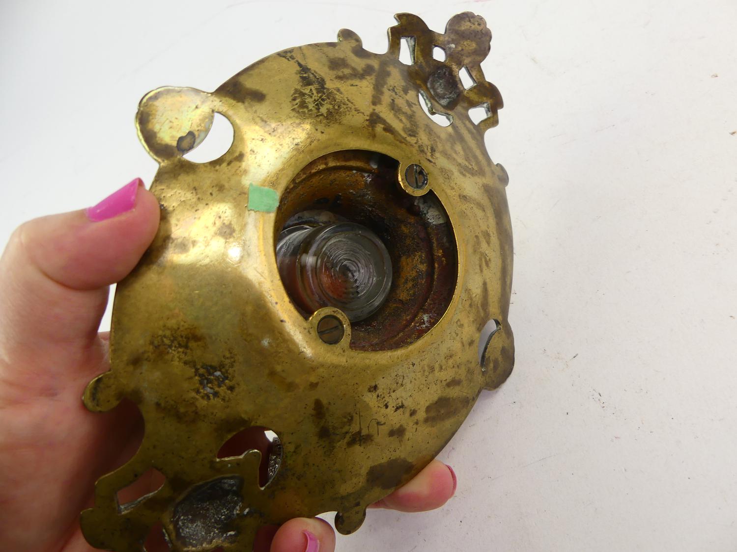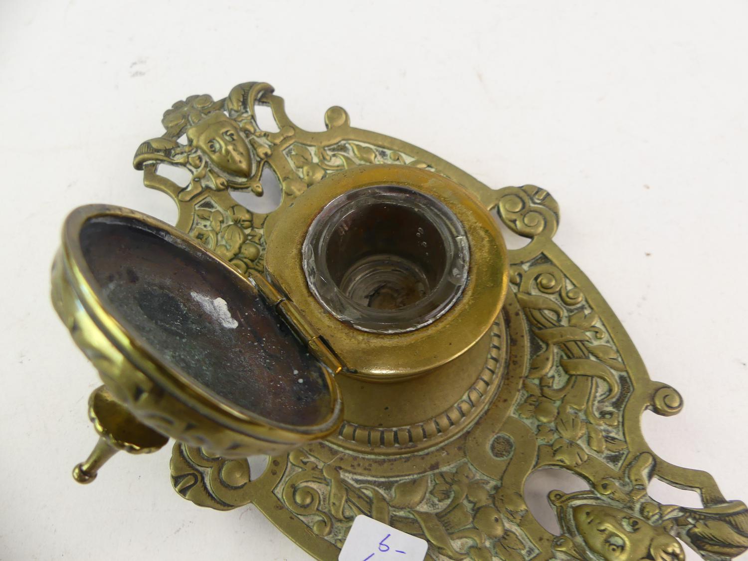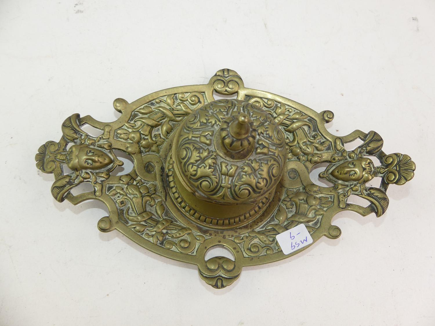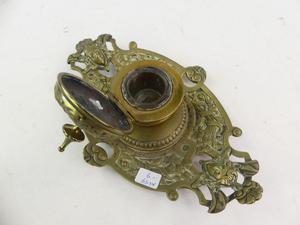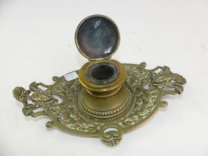 19th century brass inkwell, length 9"