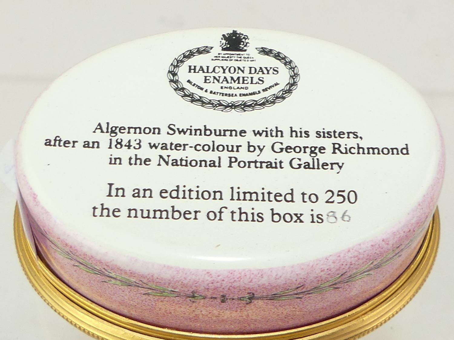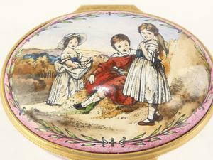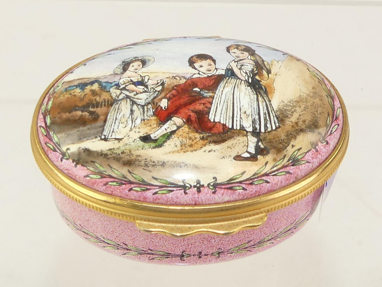 halcyon days enamel pill box after 1843 watercolour by george richmond, length 2"