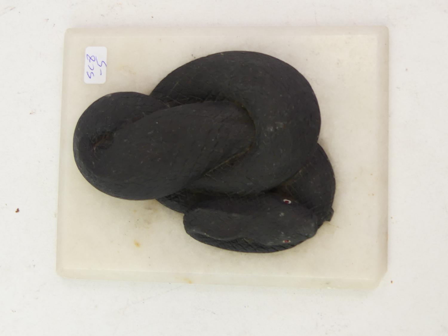 model of a snake on alabaster base, 5 1/2" x 4 1/4"