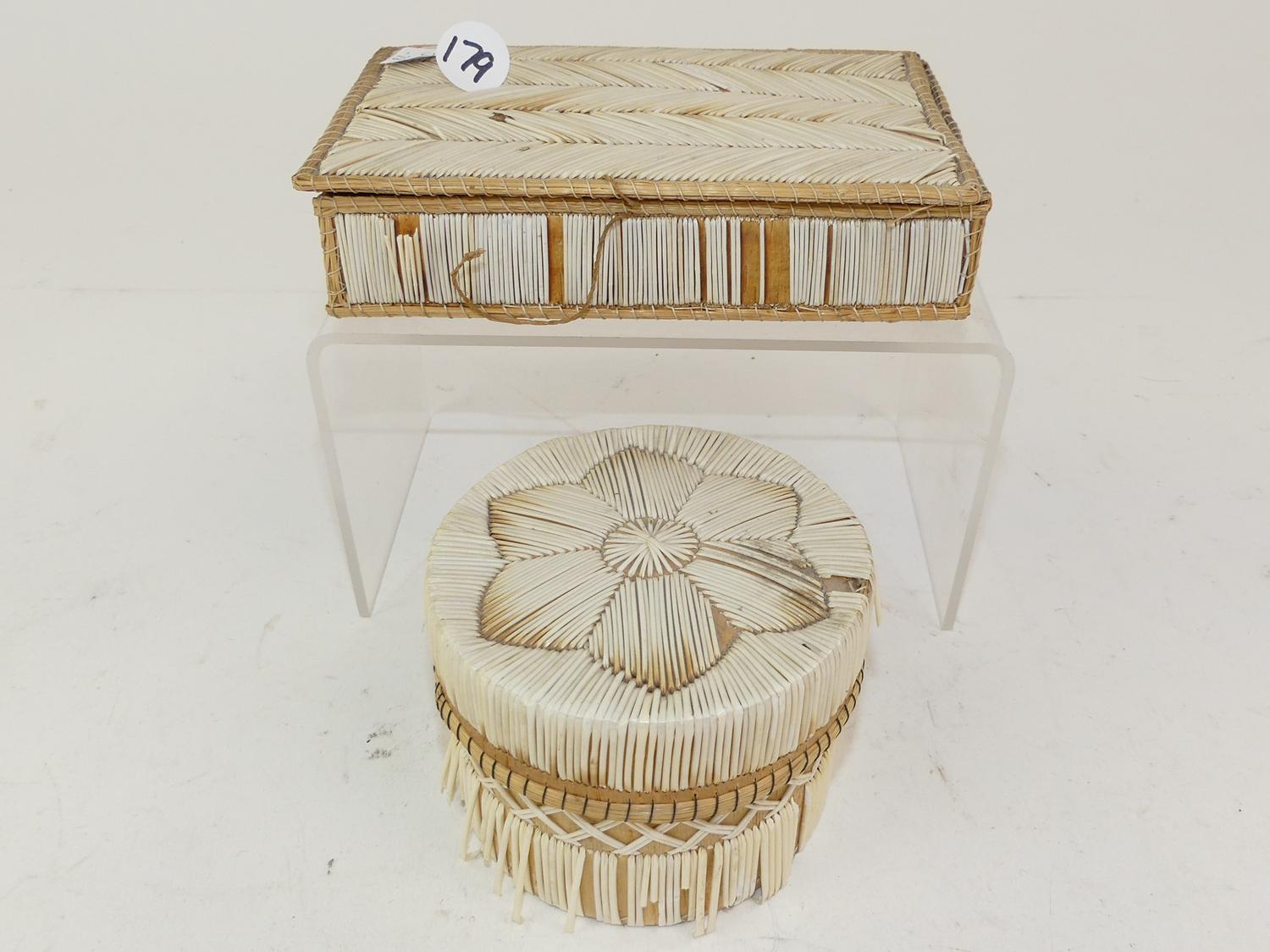 two woven quill boxes, 6" and smaller