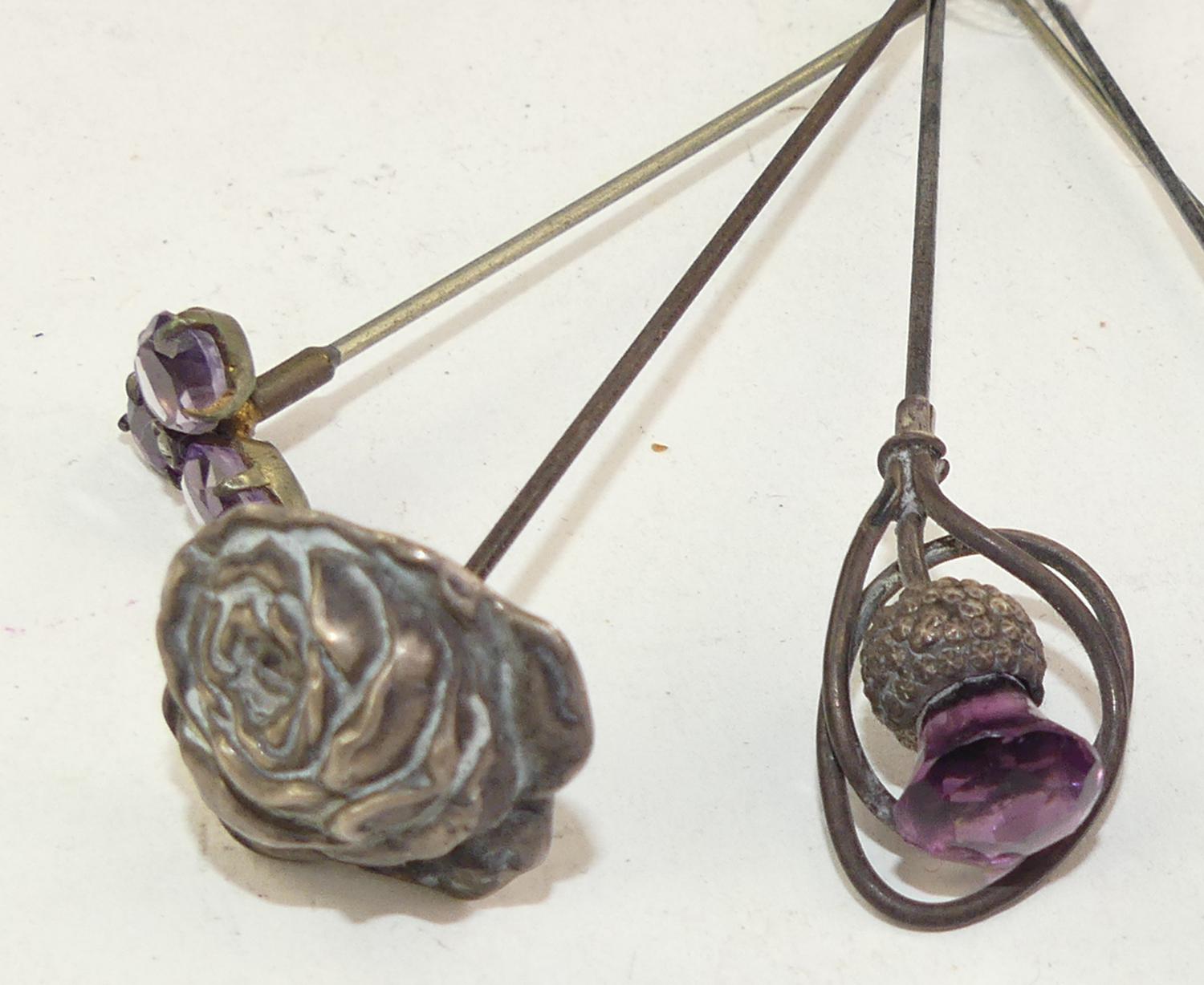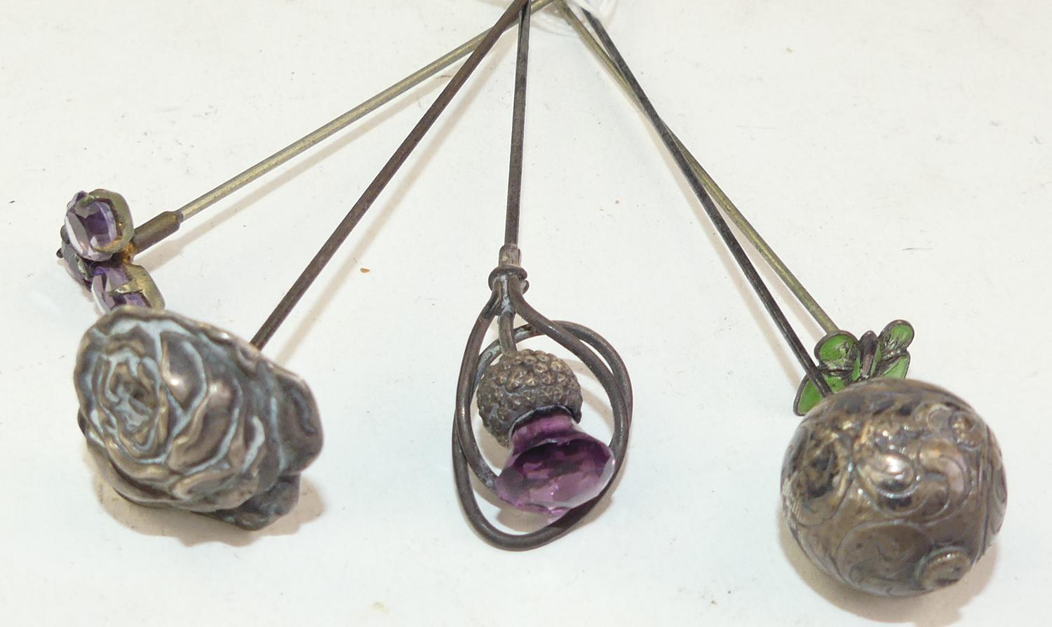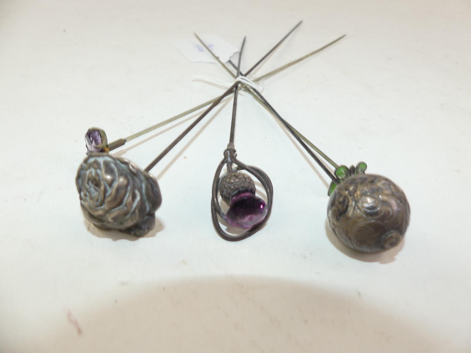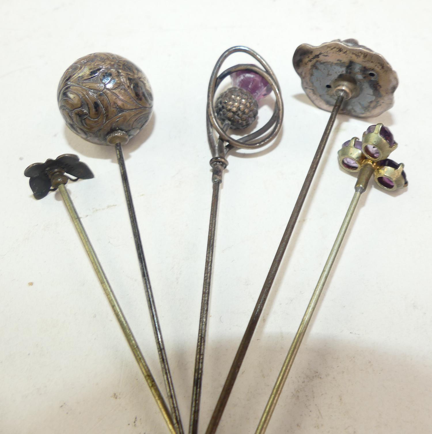 five silver hat pins, length 9" and shorter