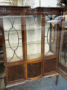 edwardian inlaid mahogany curio, english, circa 1900, 70" x 48" x 15"