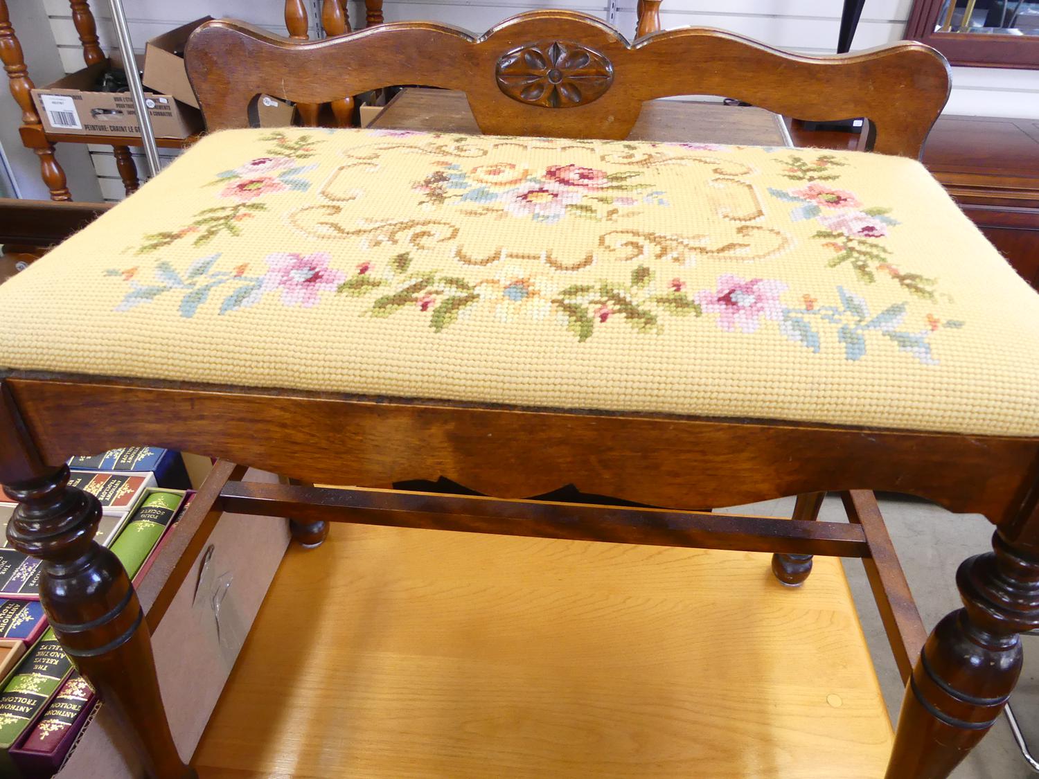 needlepoint upholstered bench