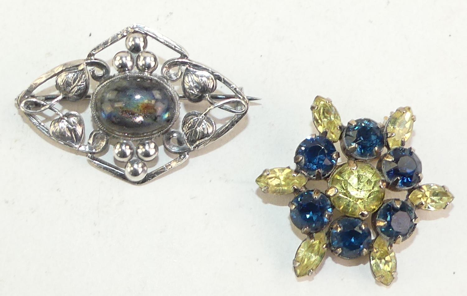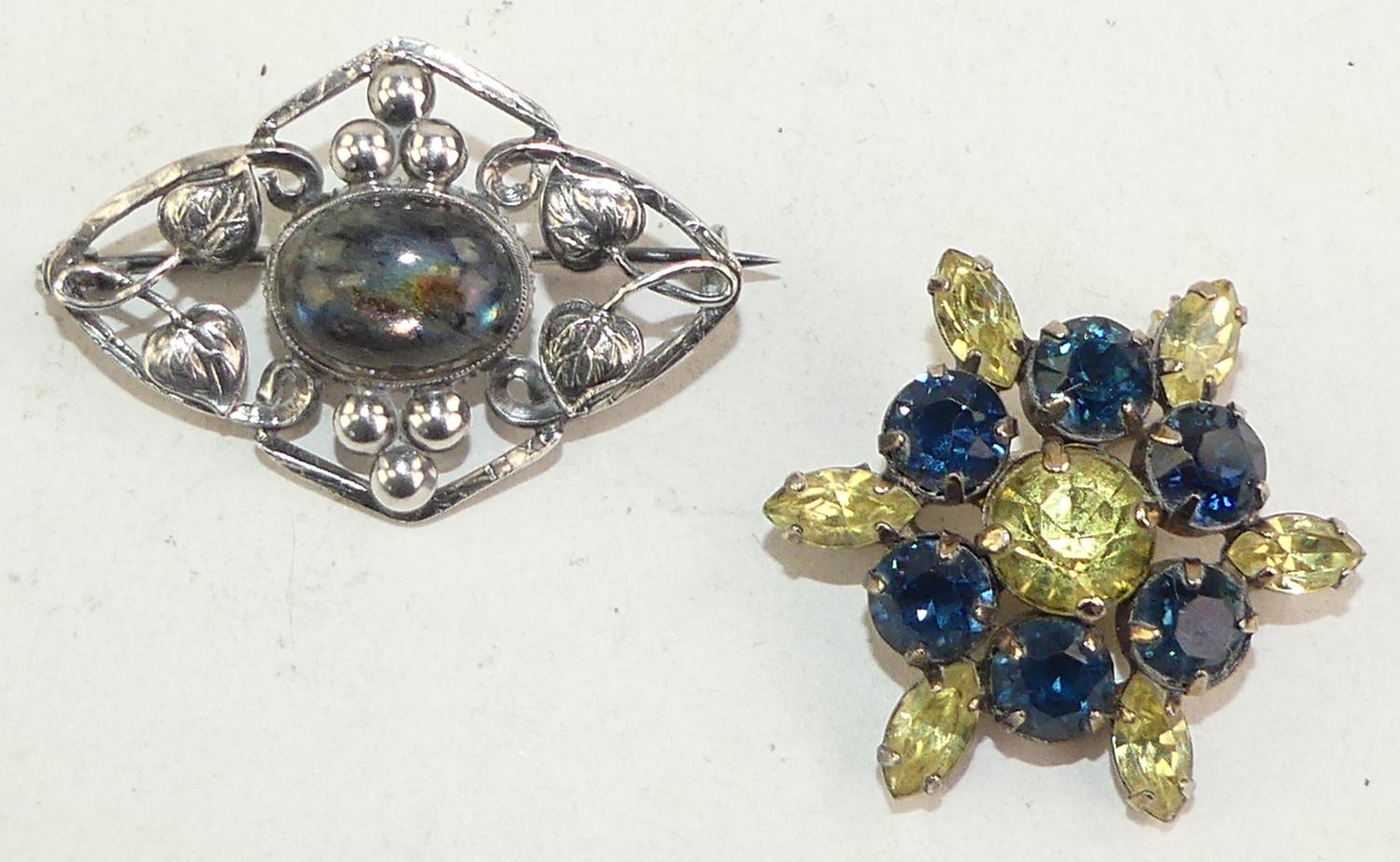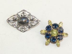 art nouveau 935 silver brooch and jay flex sterling rhinestone brooch