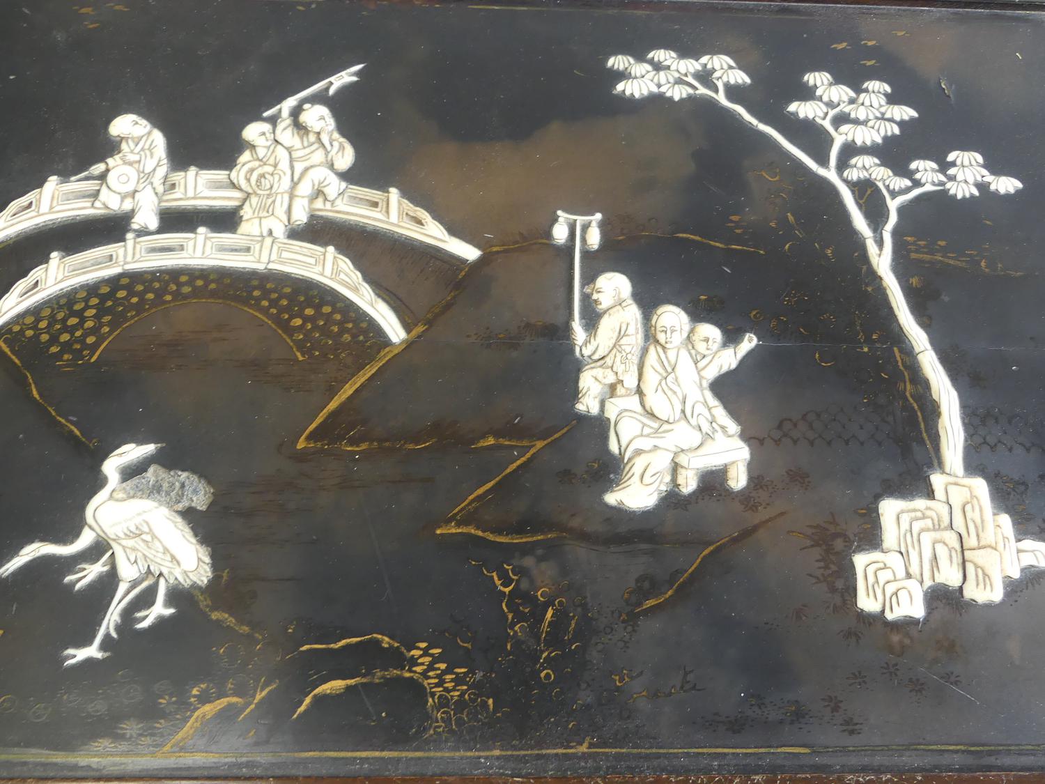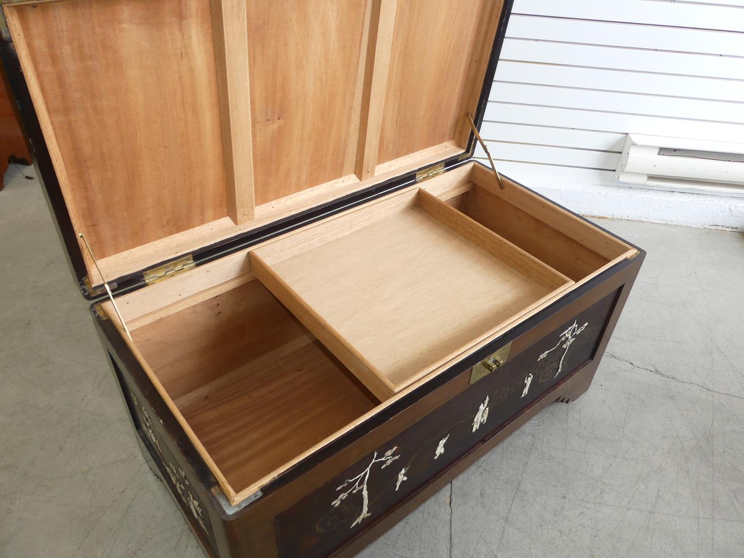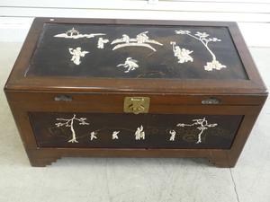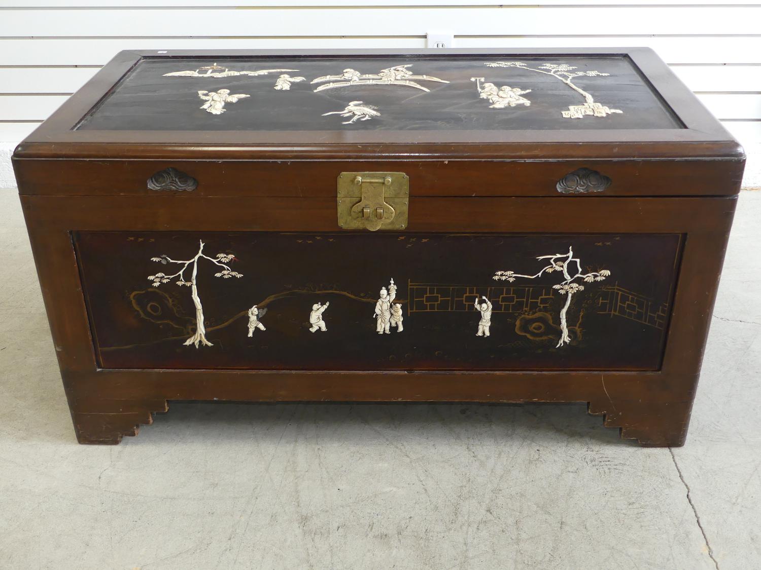 asian inlaid and lacquered chest, early 20th century, 22" x 41" x 21 1/2"