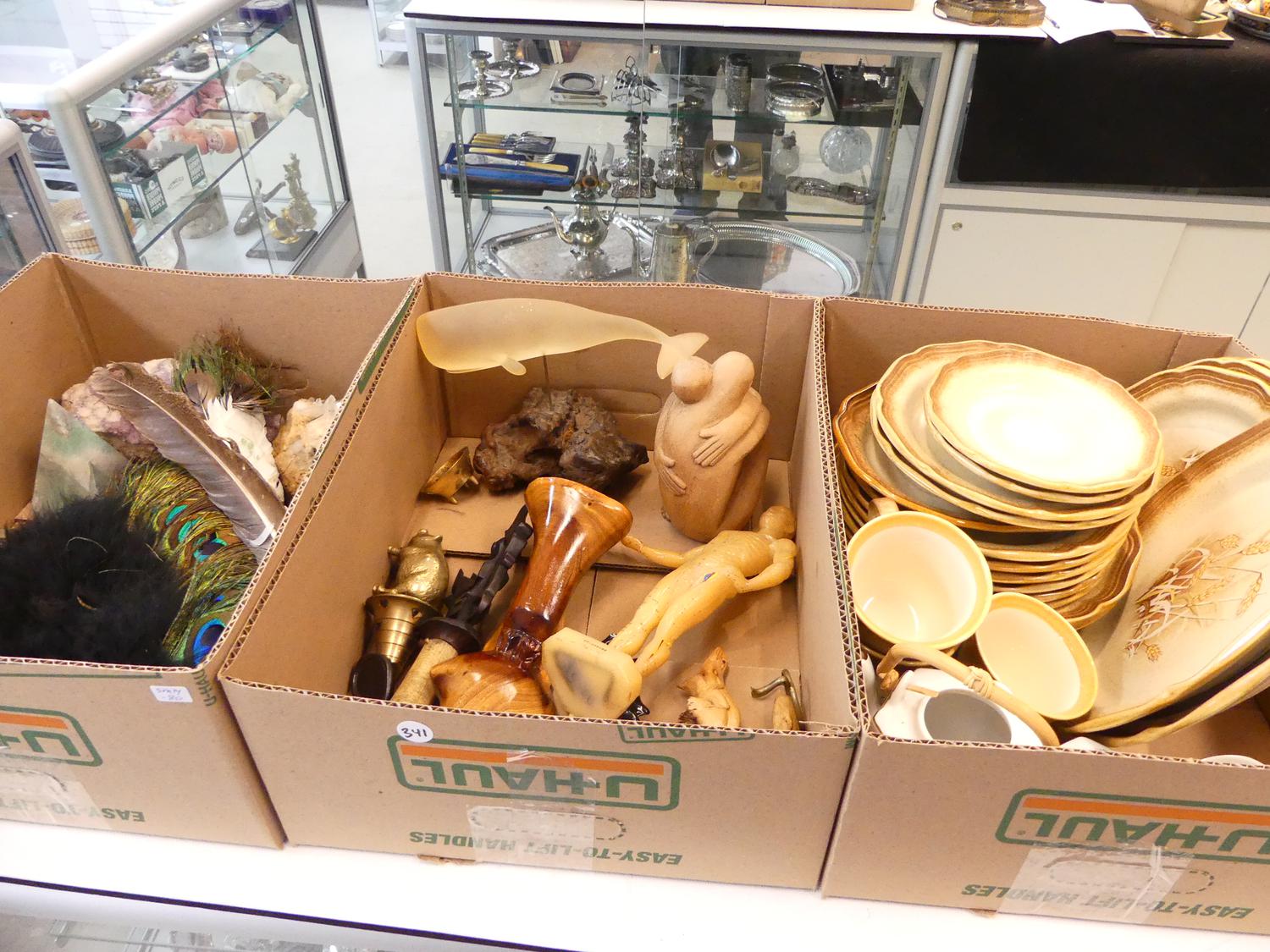 lot of geodes, china, pottery and glass etc