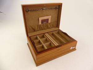 italian burlwood jewelry box with suede interior, made by agresti, florence italy