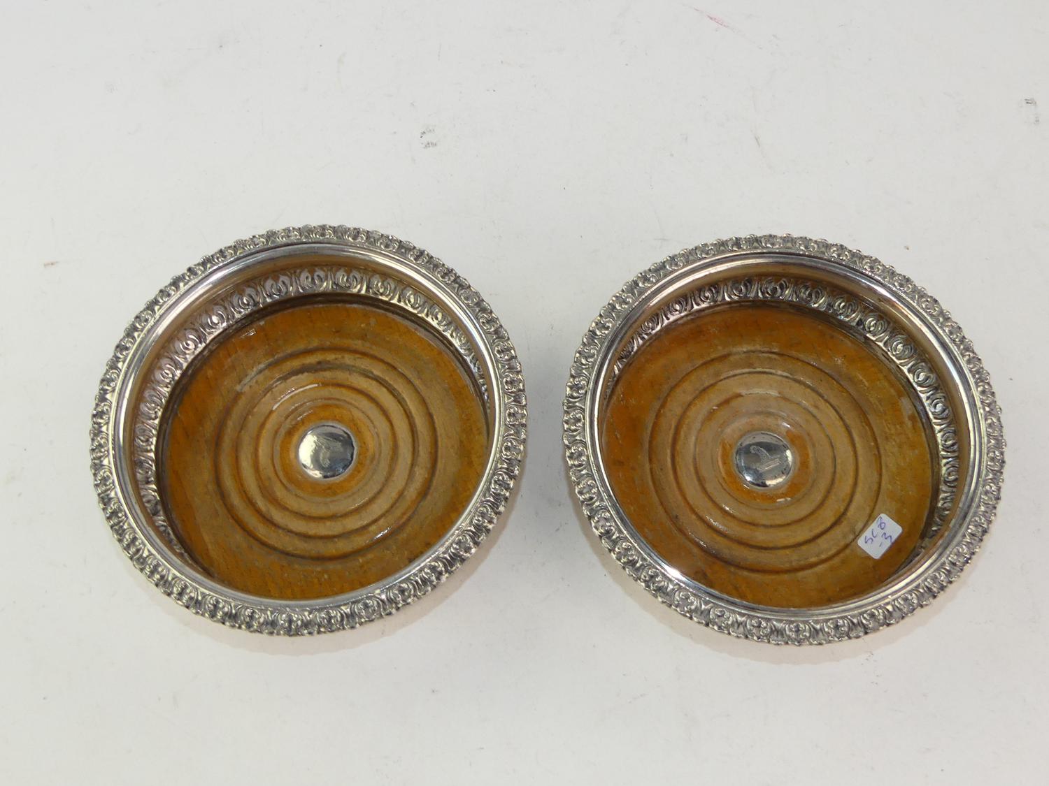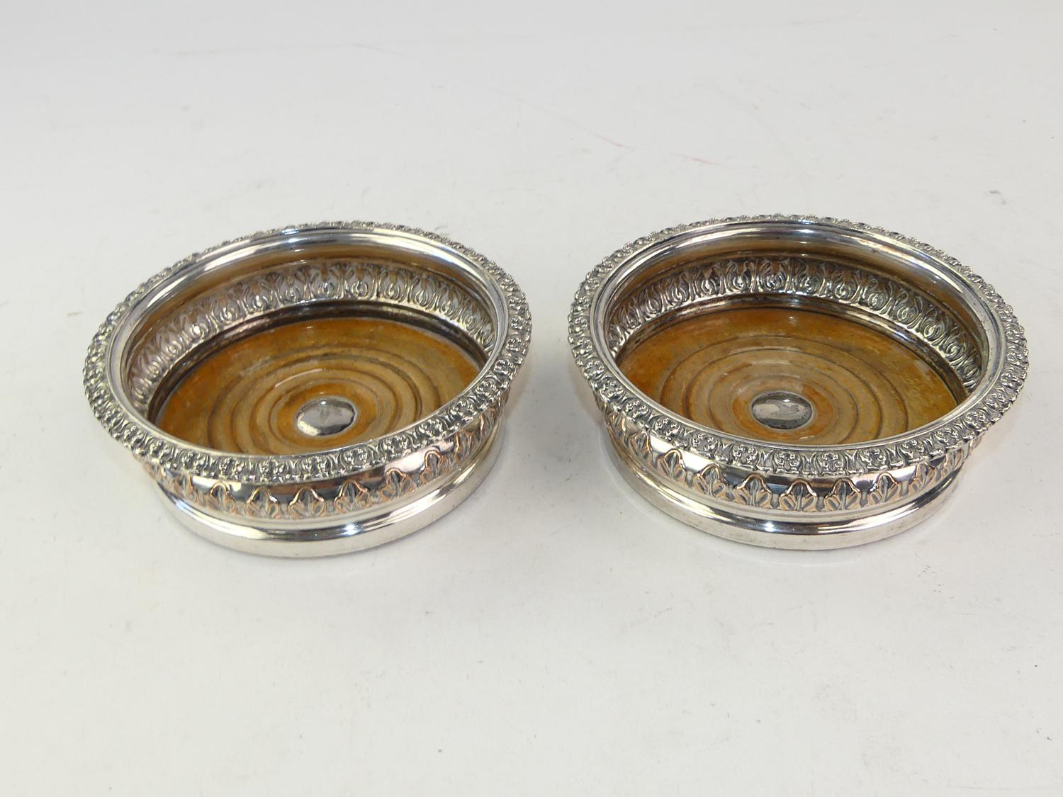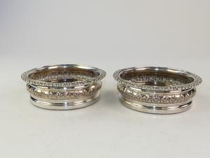 pair of silver plate bottle coasters, 19th century, dia. 6"