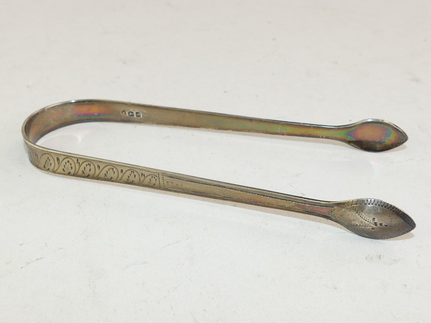 georgian sterling silver sugar tongs, peter, ann & william bateman, london 1803