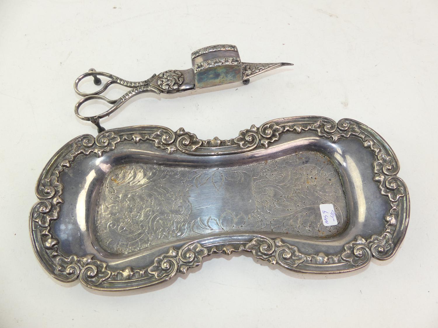 19th century silver plate candle snuffer on stand, 9 1/2"