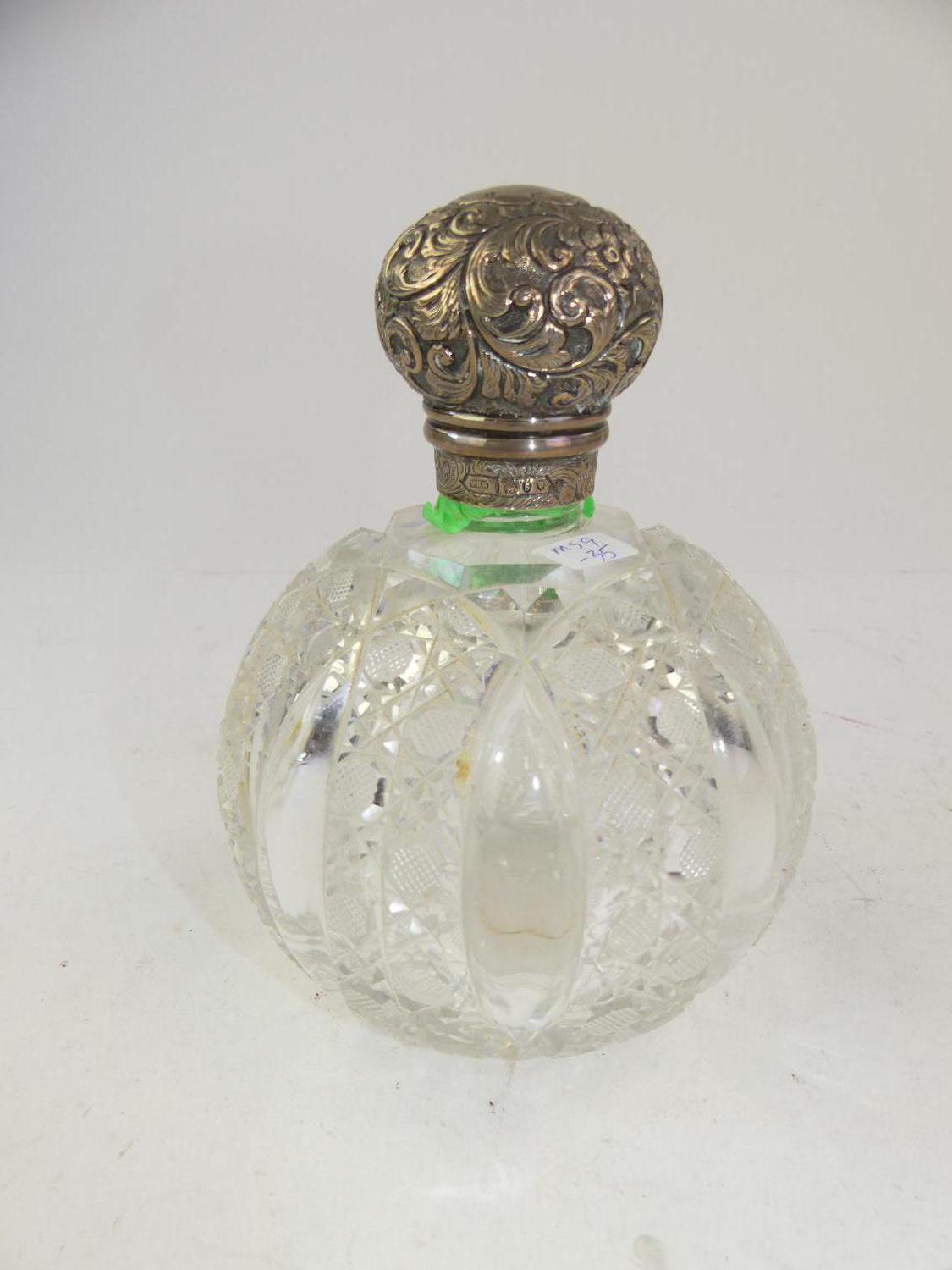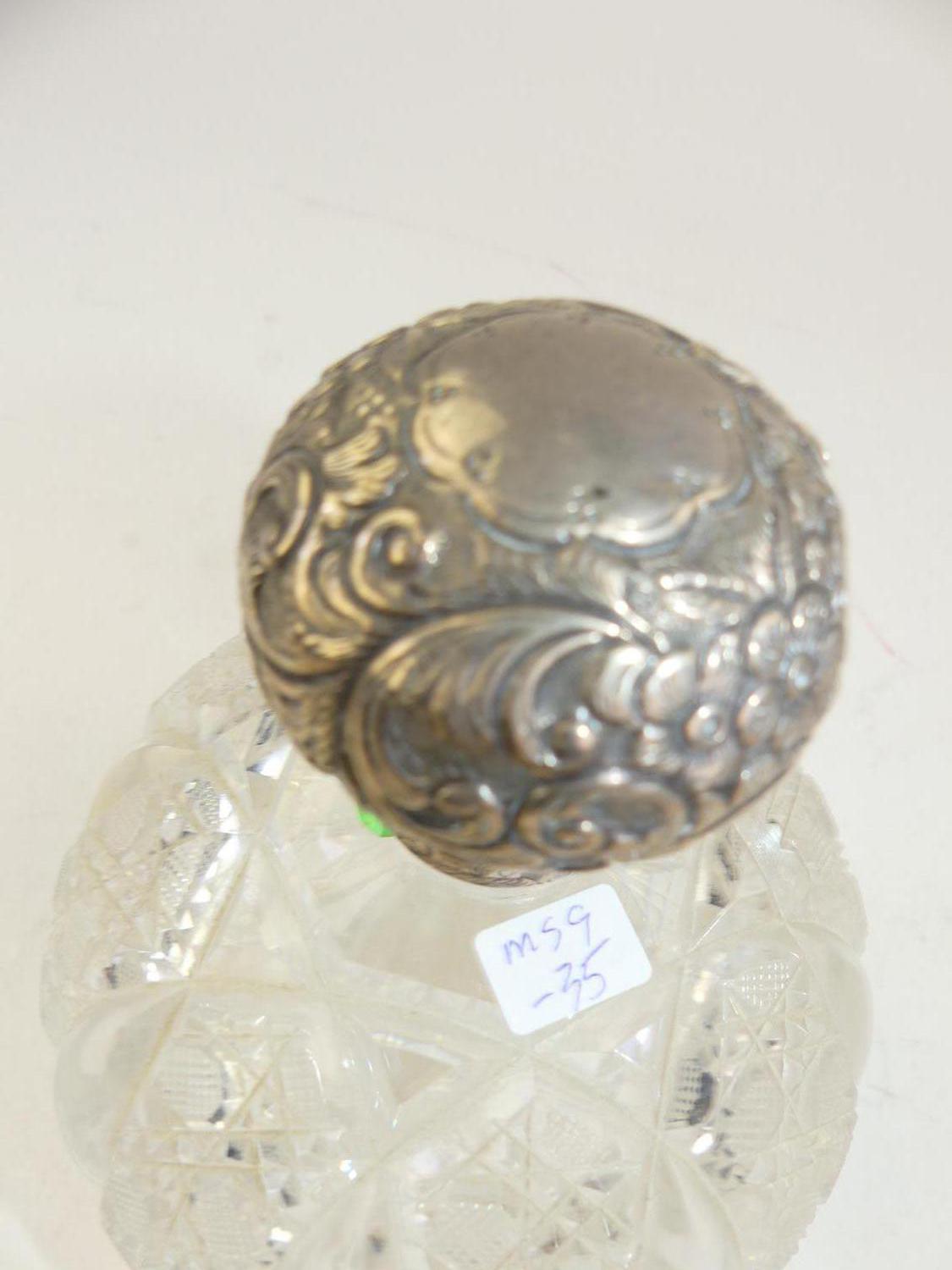 large cut crystal dresser bottle with sterling silver top, ht. 7"
