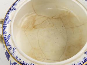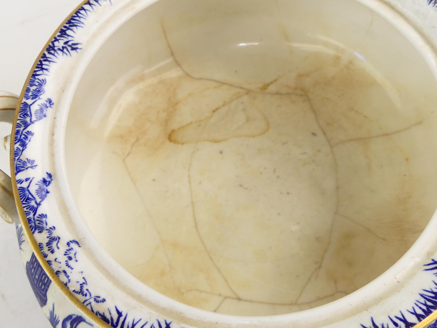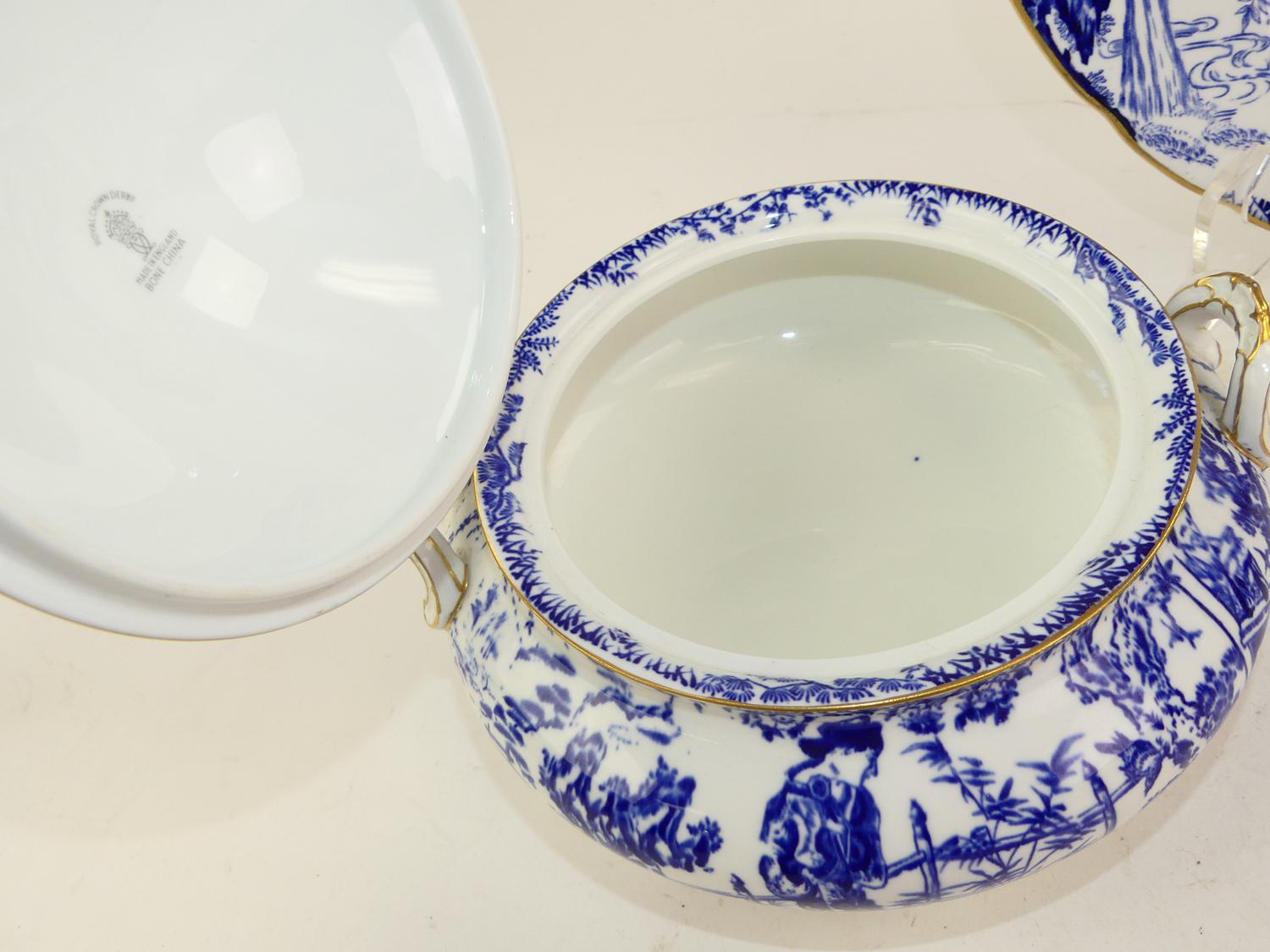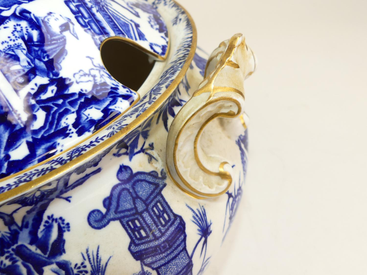 two royal crown derby mikado pattern footed tureens and a platter, condition noted on larger tureen