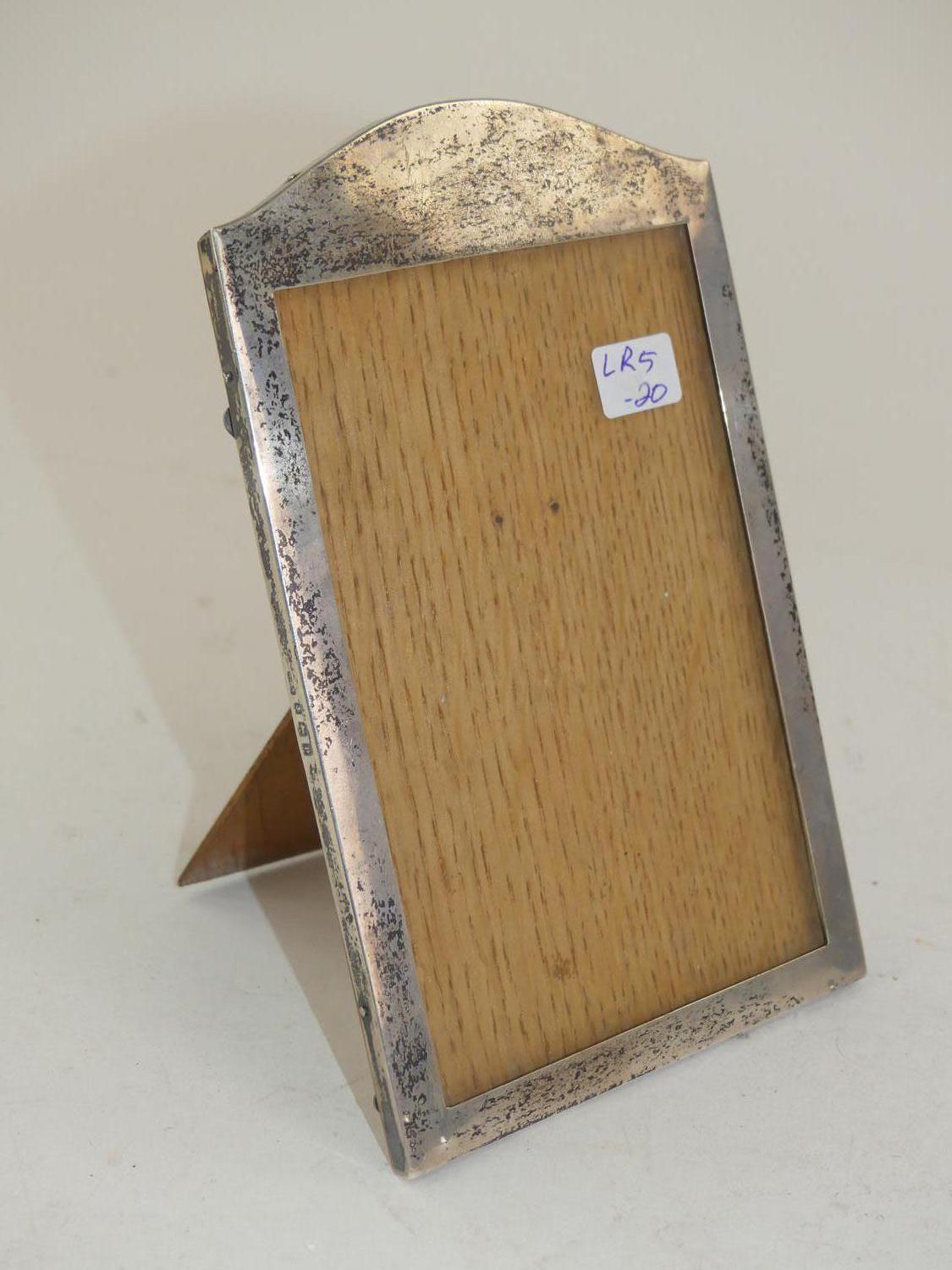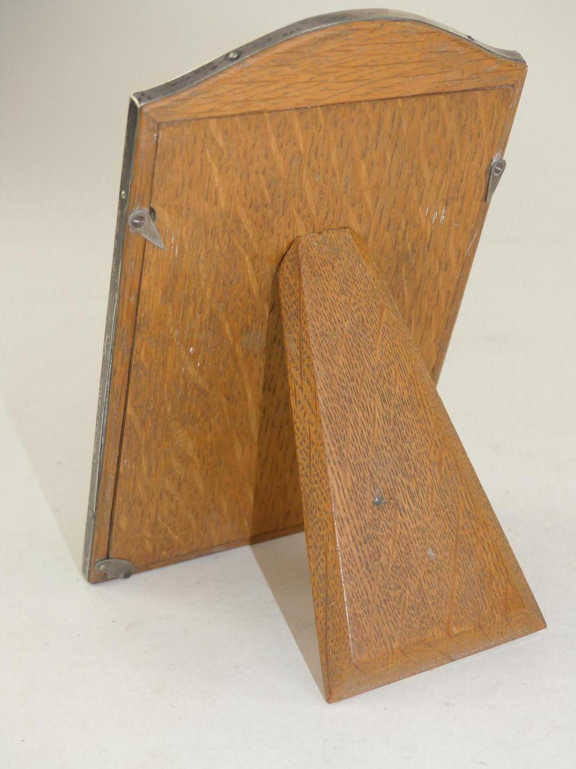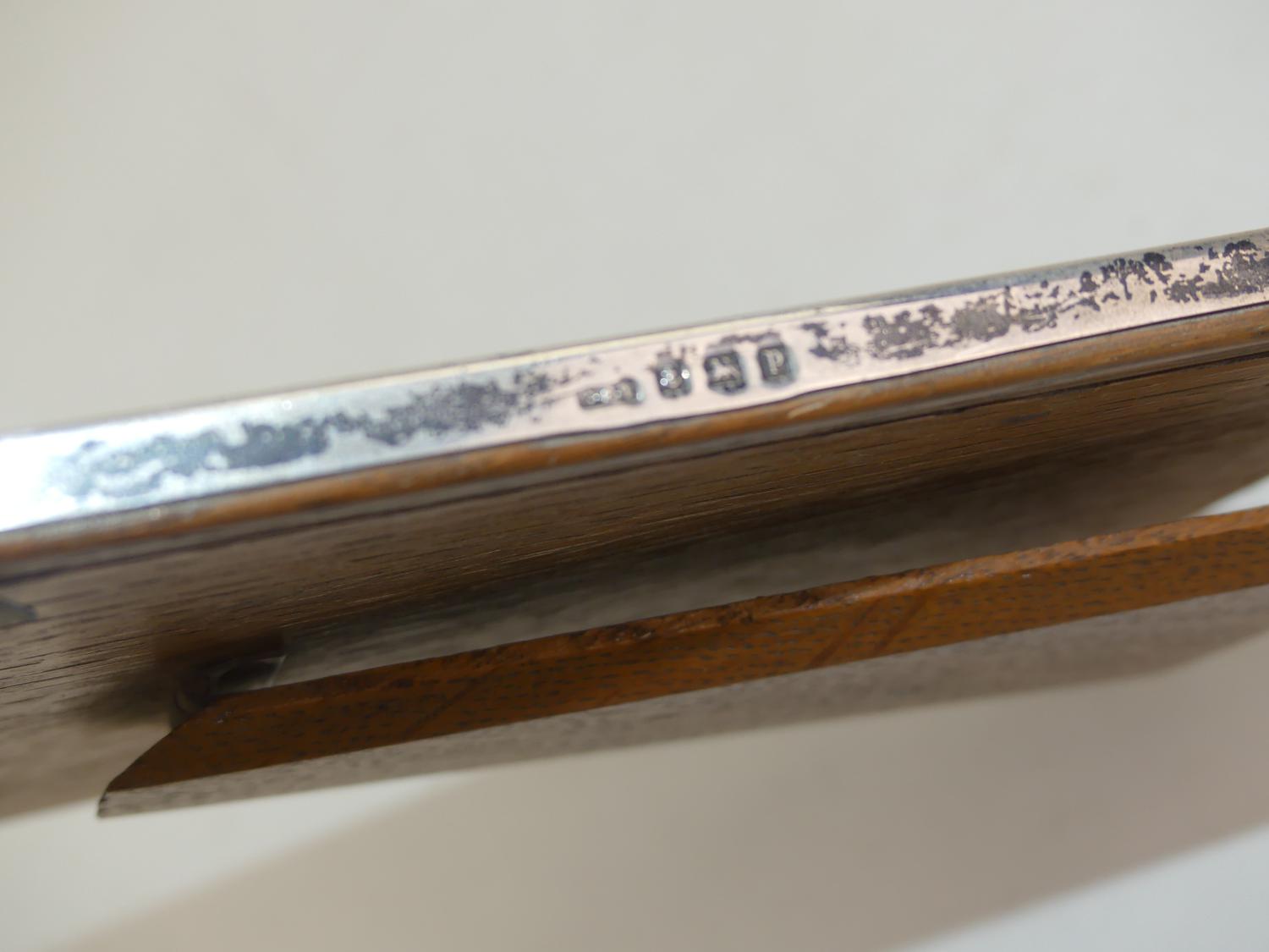 english hallmarked sterling silver and oak dresser frame, ht. 7"