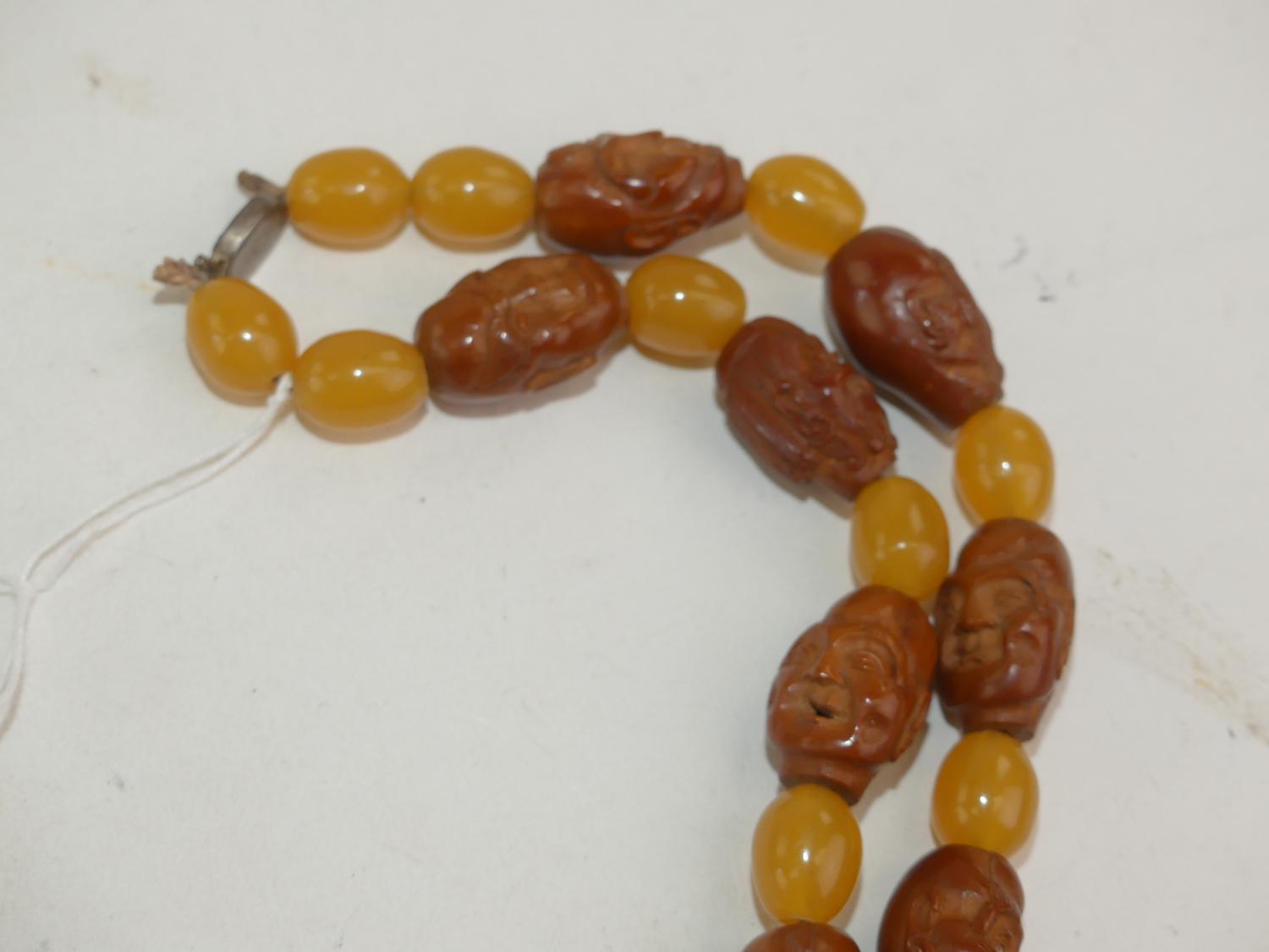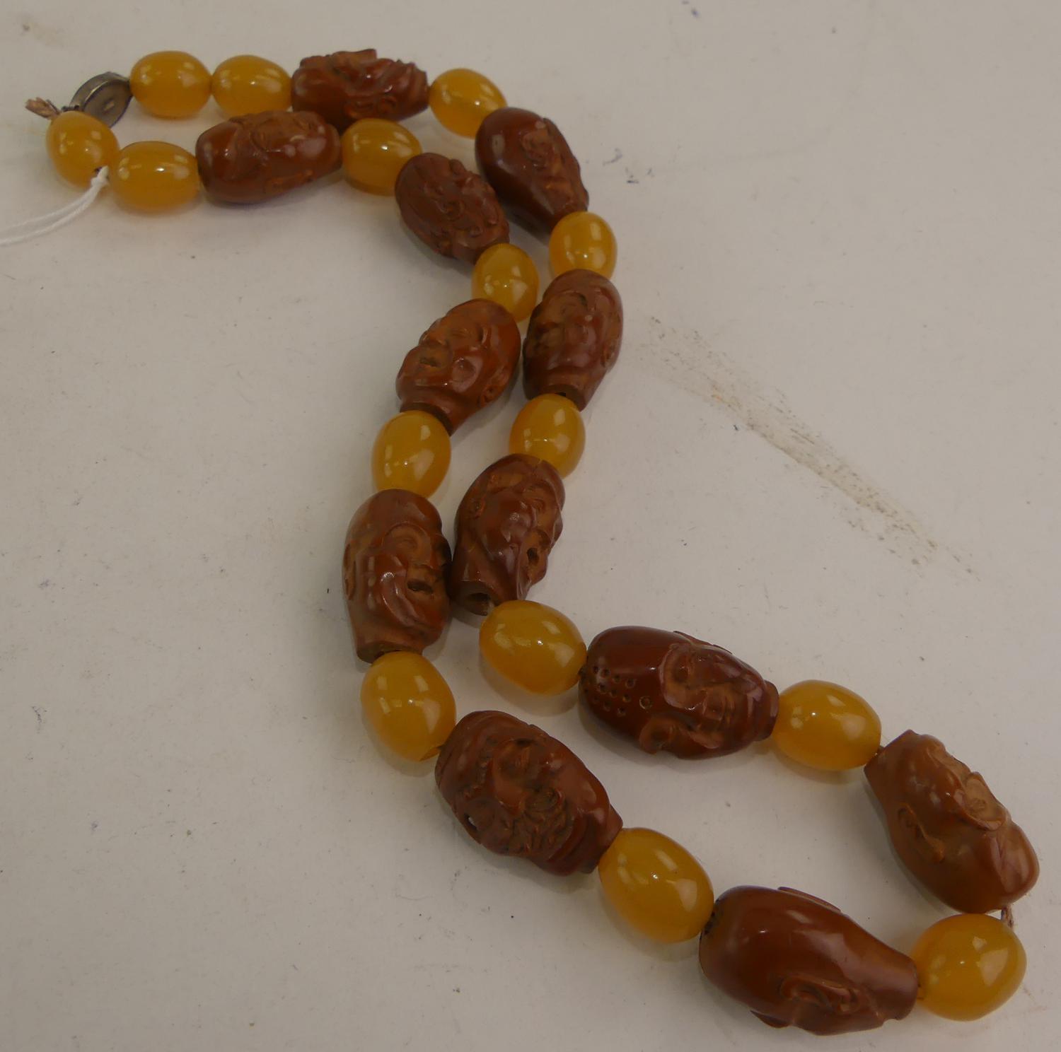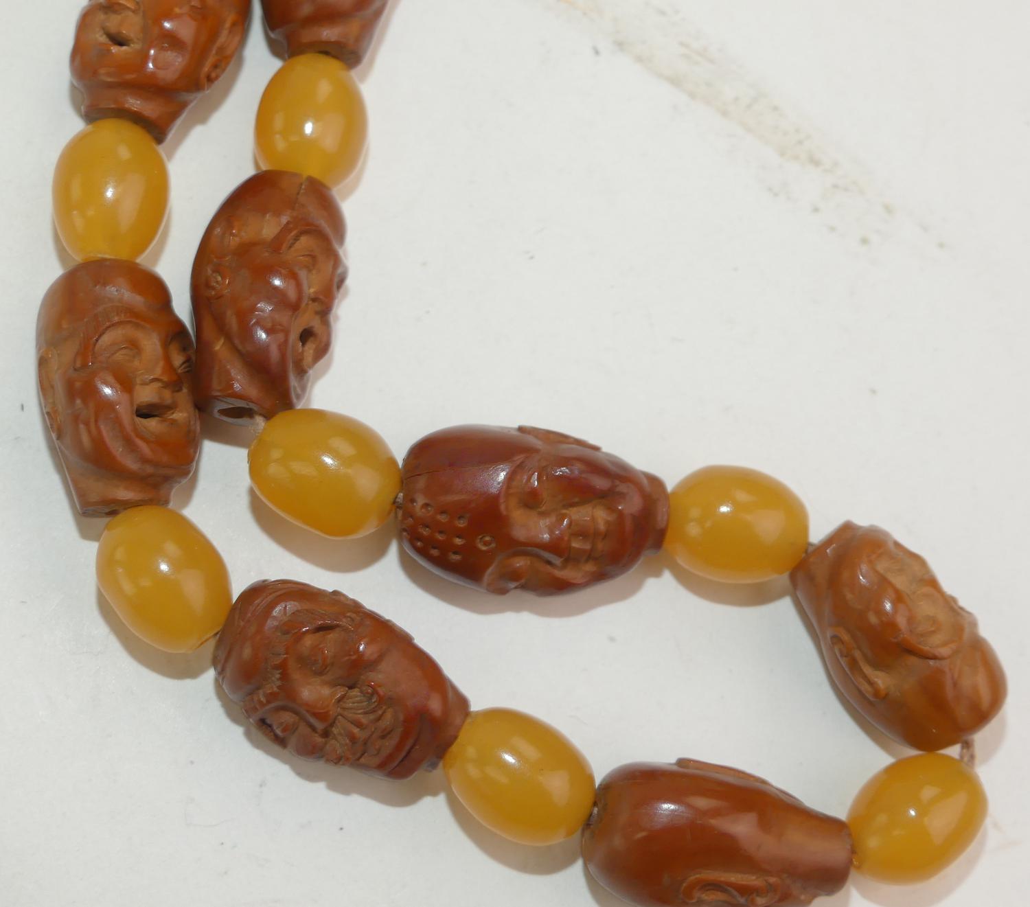 chinese carve hediao nut and amber bead necklace, early 20th century