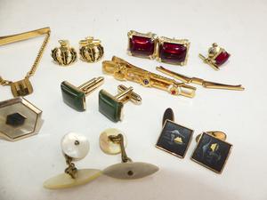 lot of vintage mens cufflinks, including damascene, mother of pearl