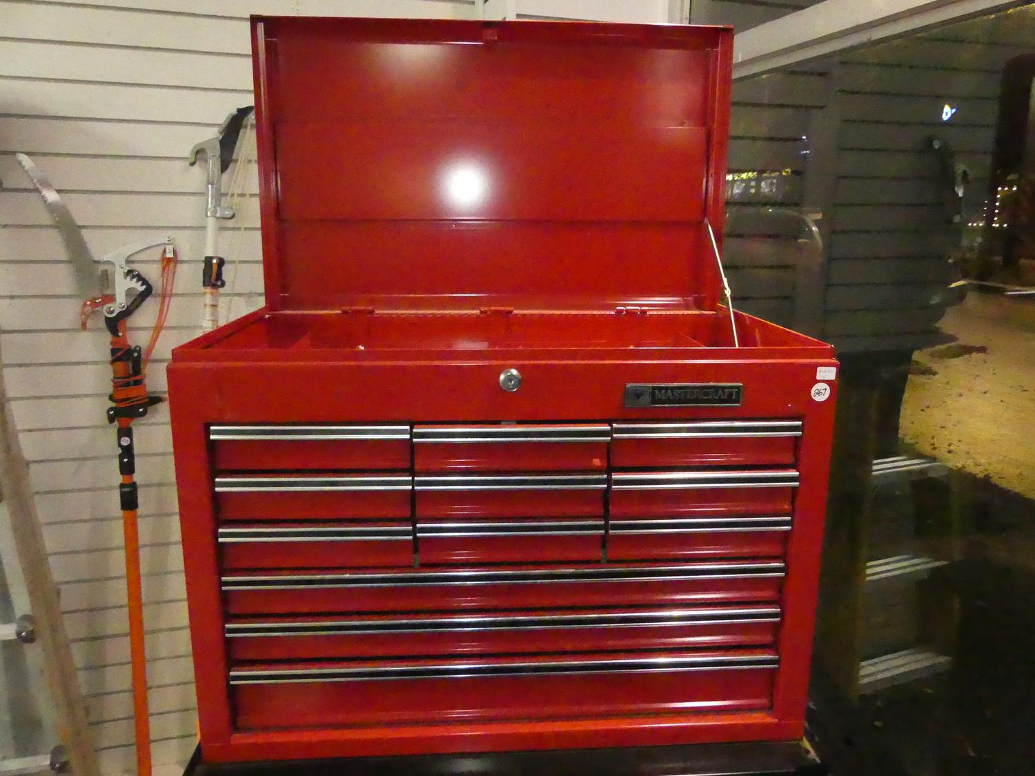 mastercraft tool chest, red and black