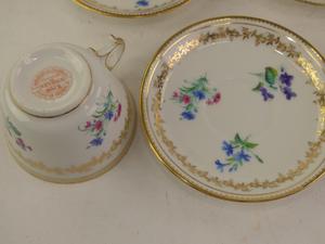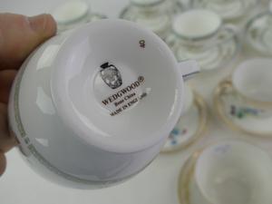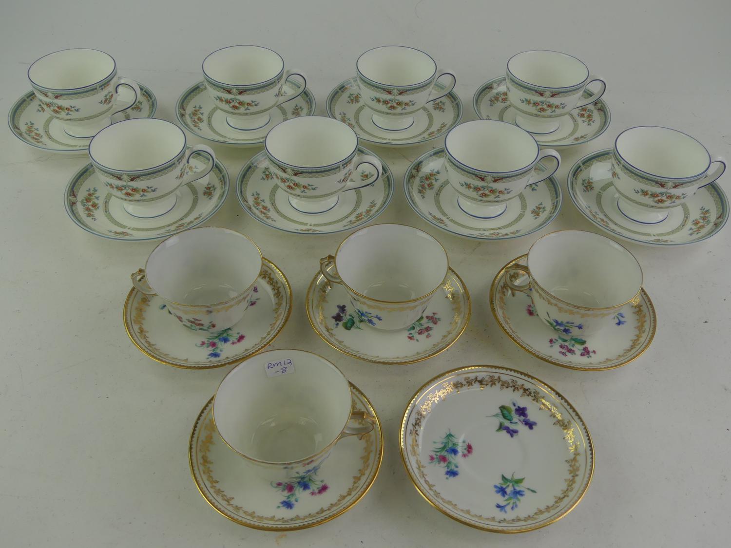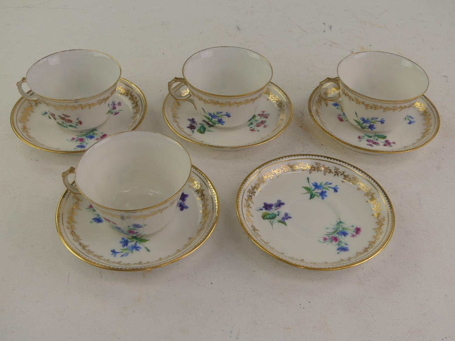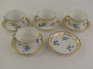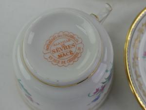 four sevres tea cups and saucers with eight wedgewood tea cups and saucers