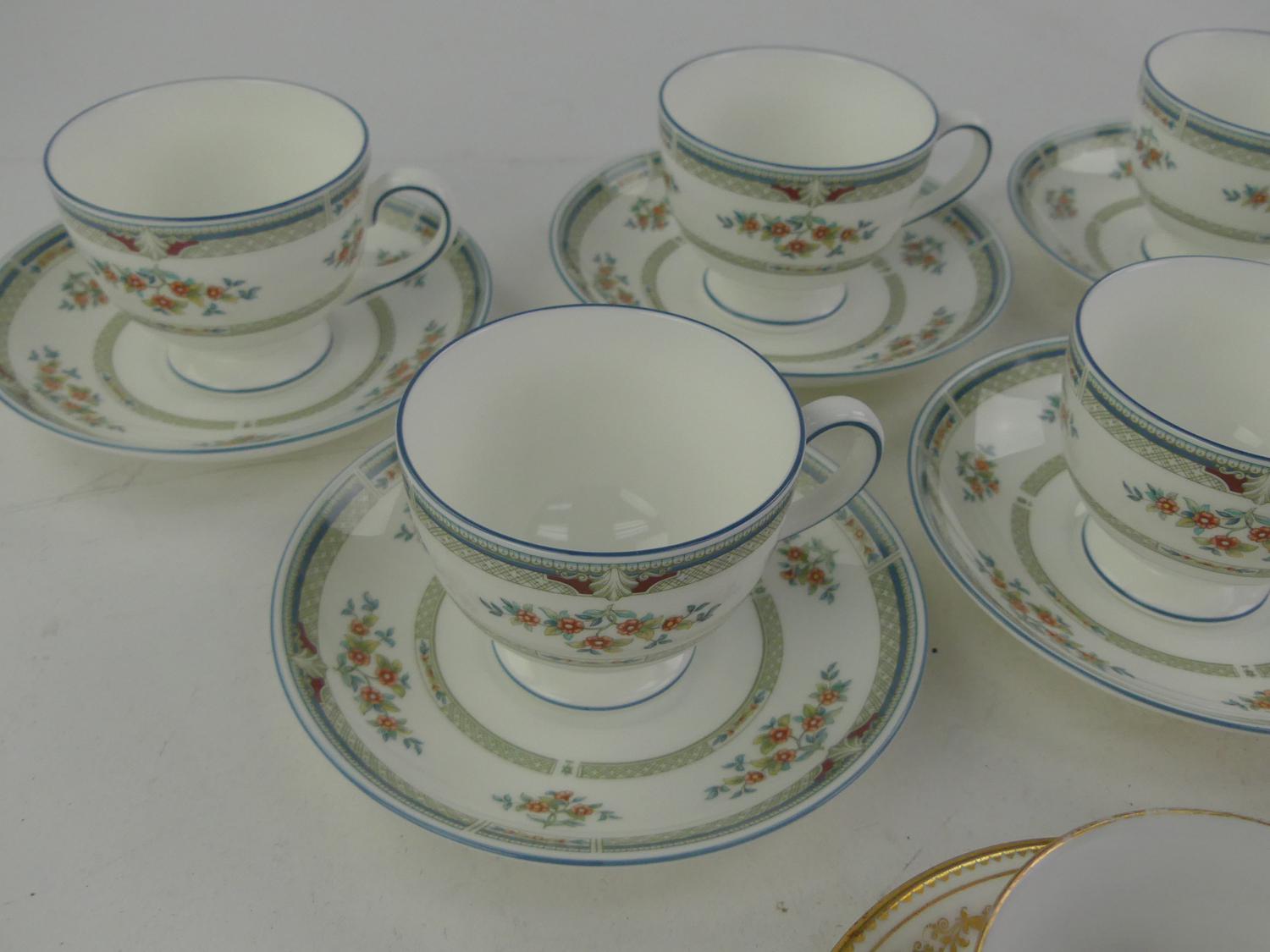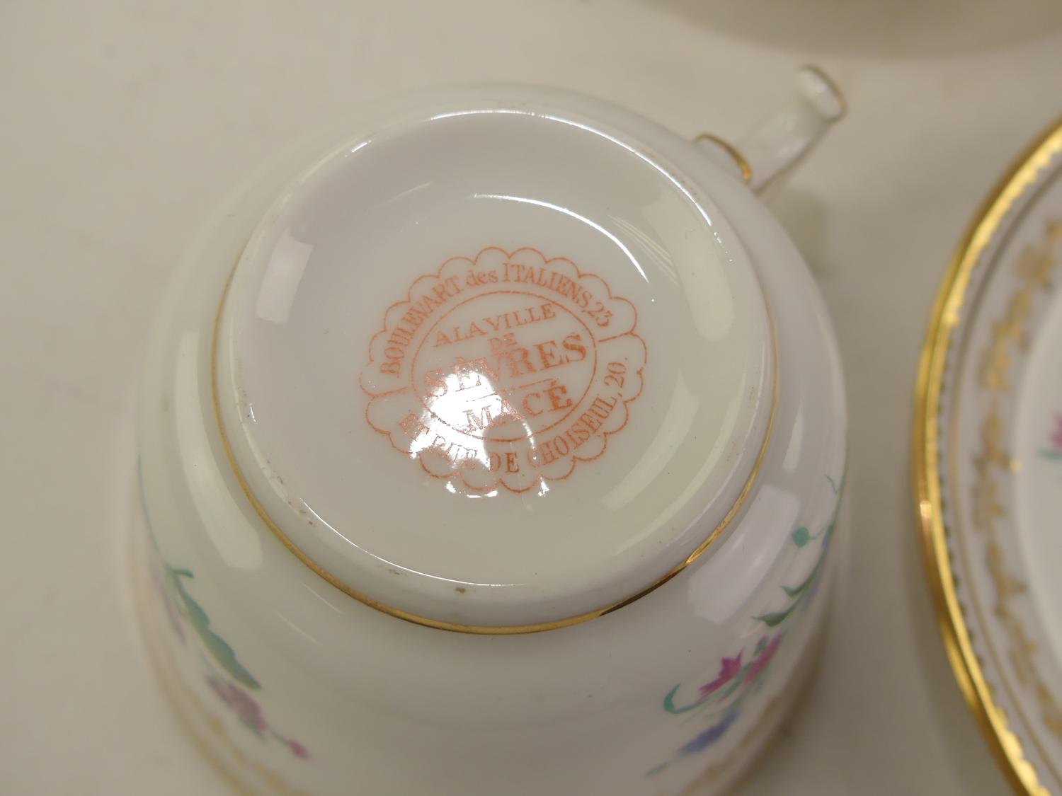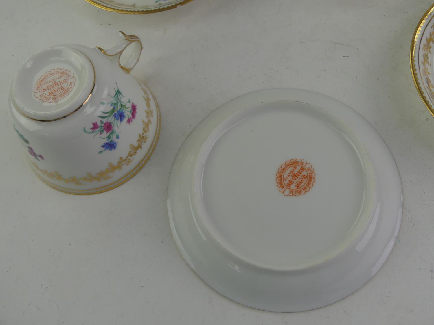 four sevres tea cups and saucers with eight wedgewood tea cups and saucers
