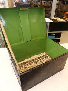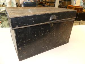 black metal boot locket, 11" x 18" x 13"