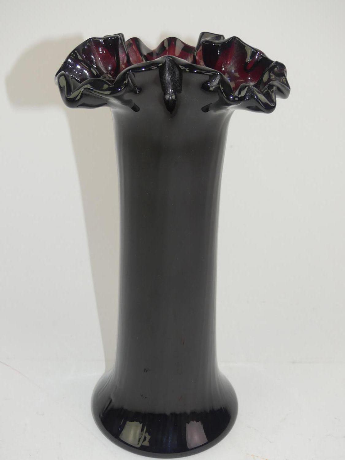 dark purple art glass vase, early 20th century, ht. 12 1/2"