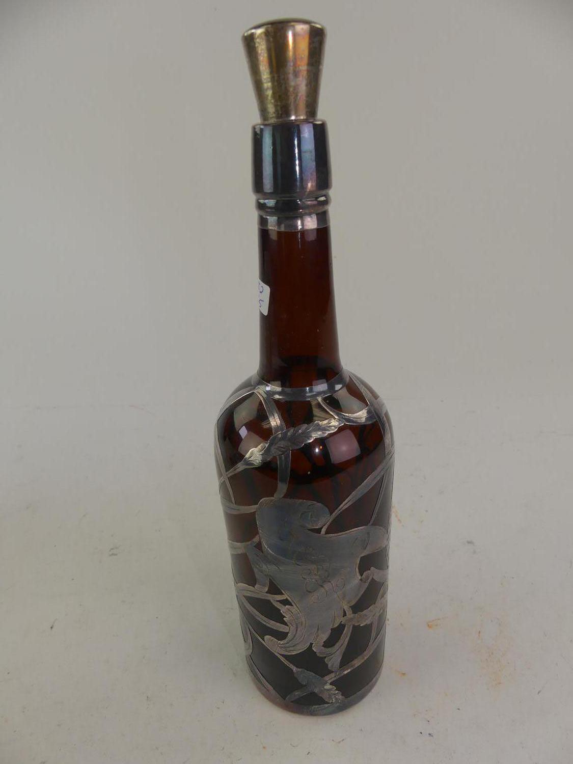 art nouveau silver overlay bottle, ht. 12 1/2"