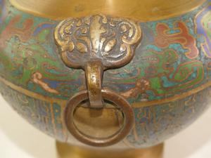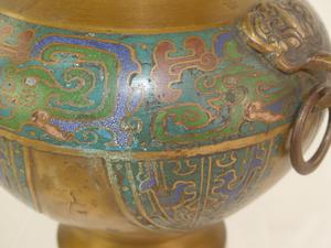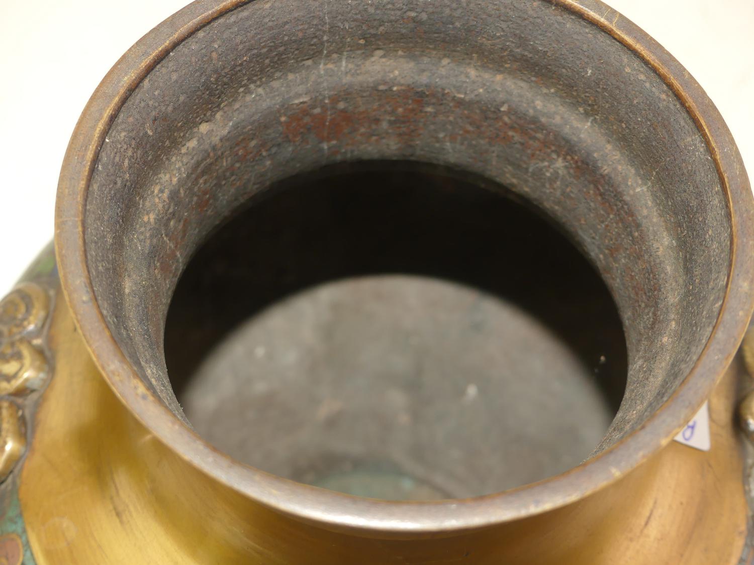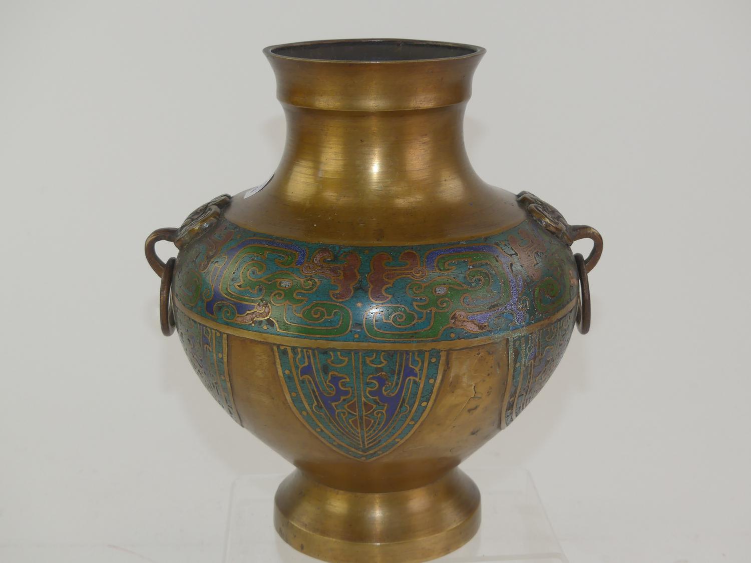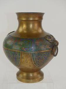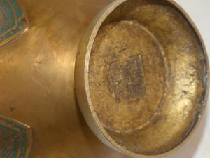 asian enamel brass vase, 6 character mark, ht. 9 1/2"