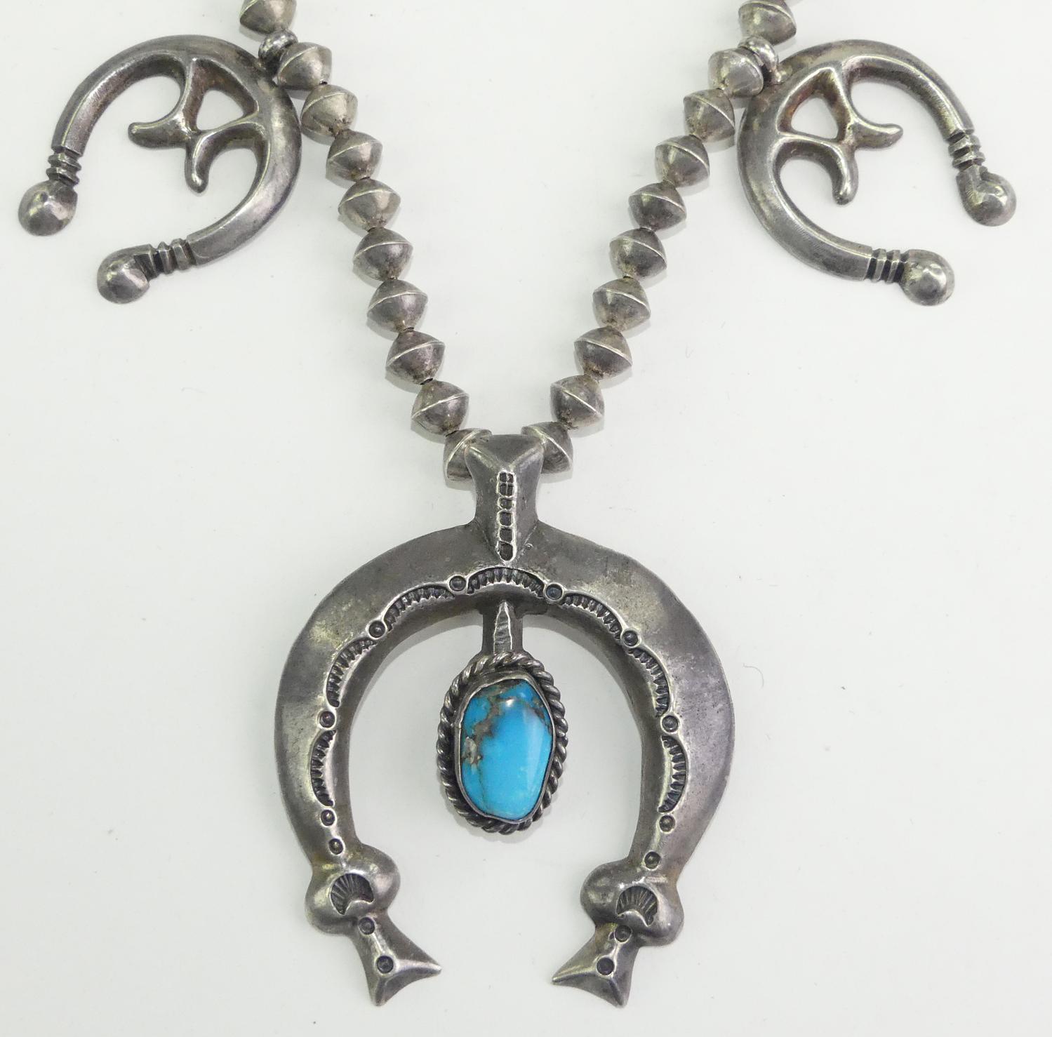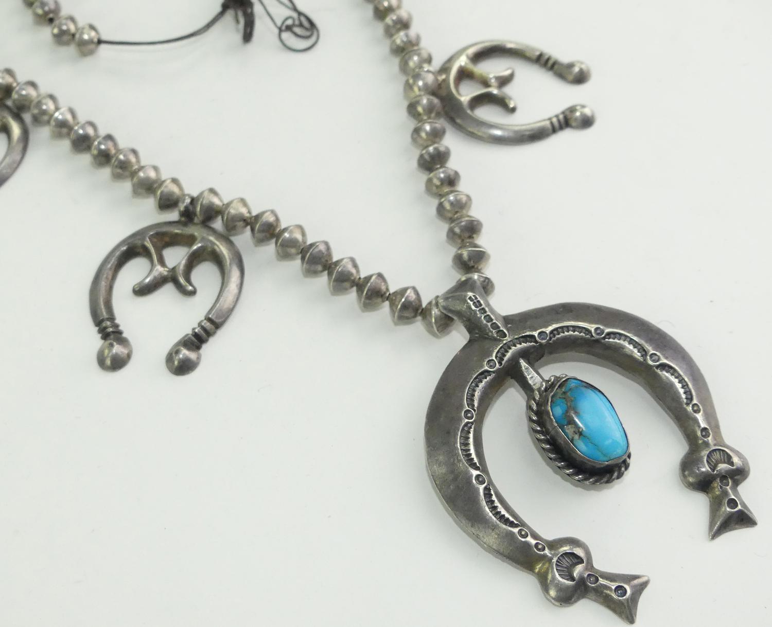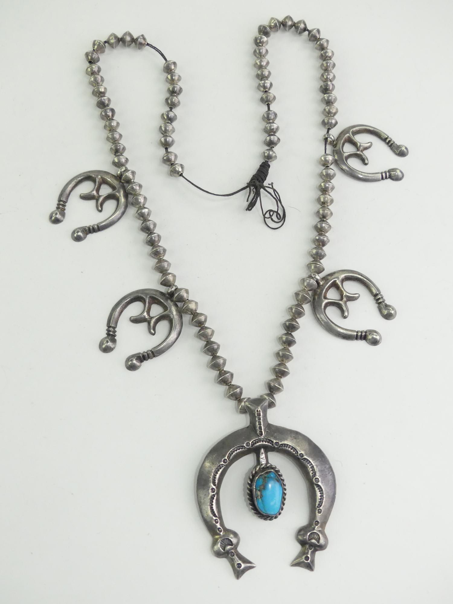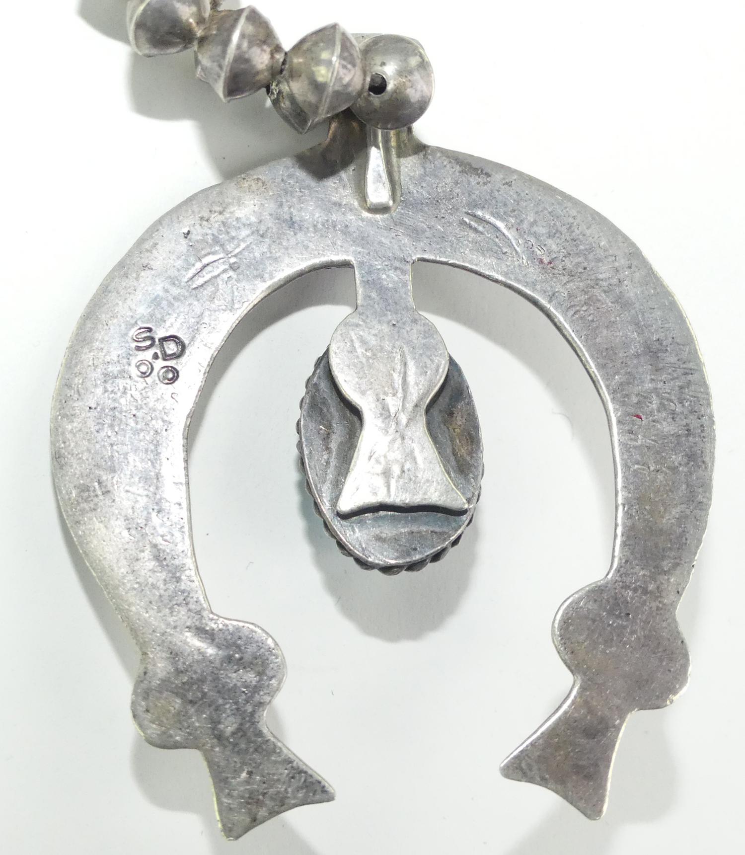 navajo silver squash blossom necklace, signed s.d., length 16"