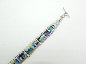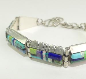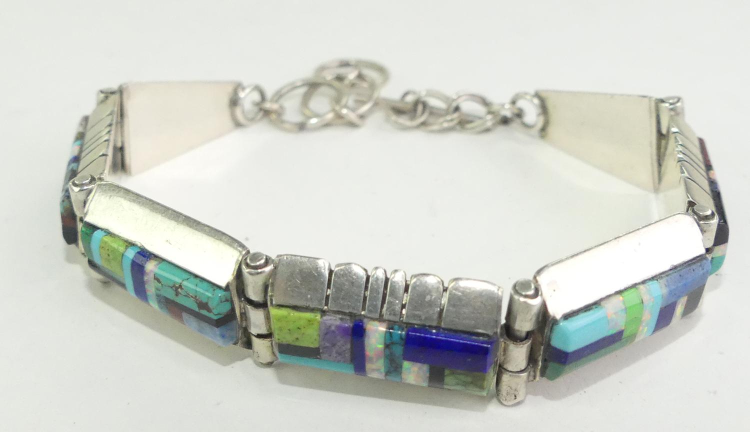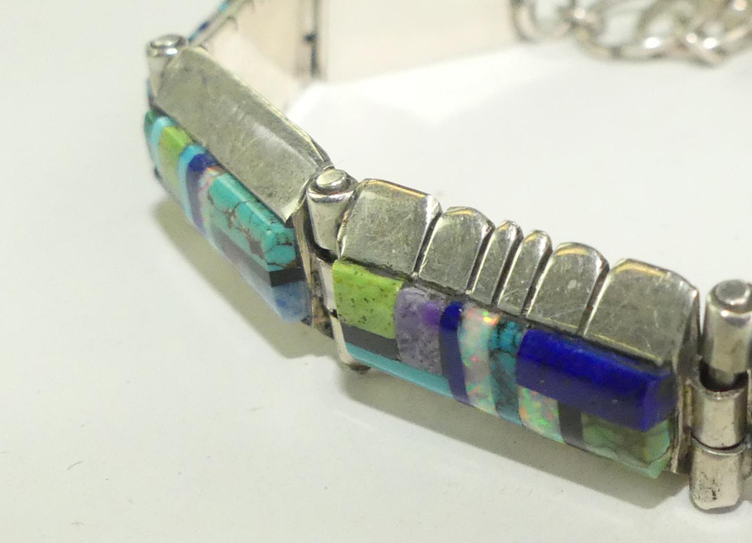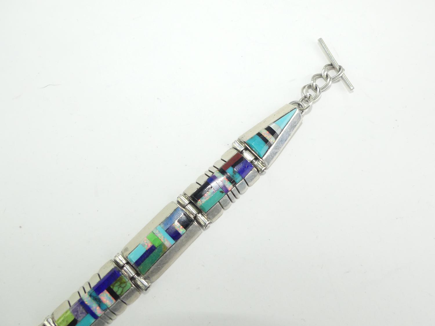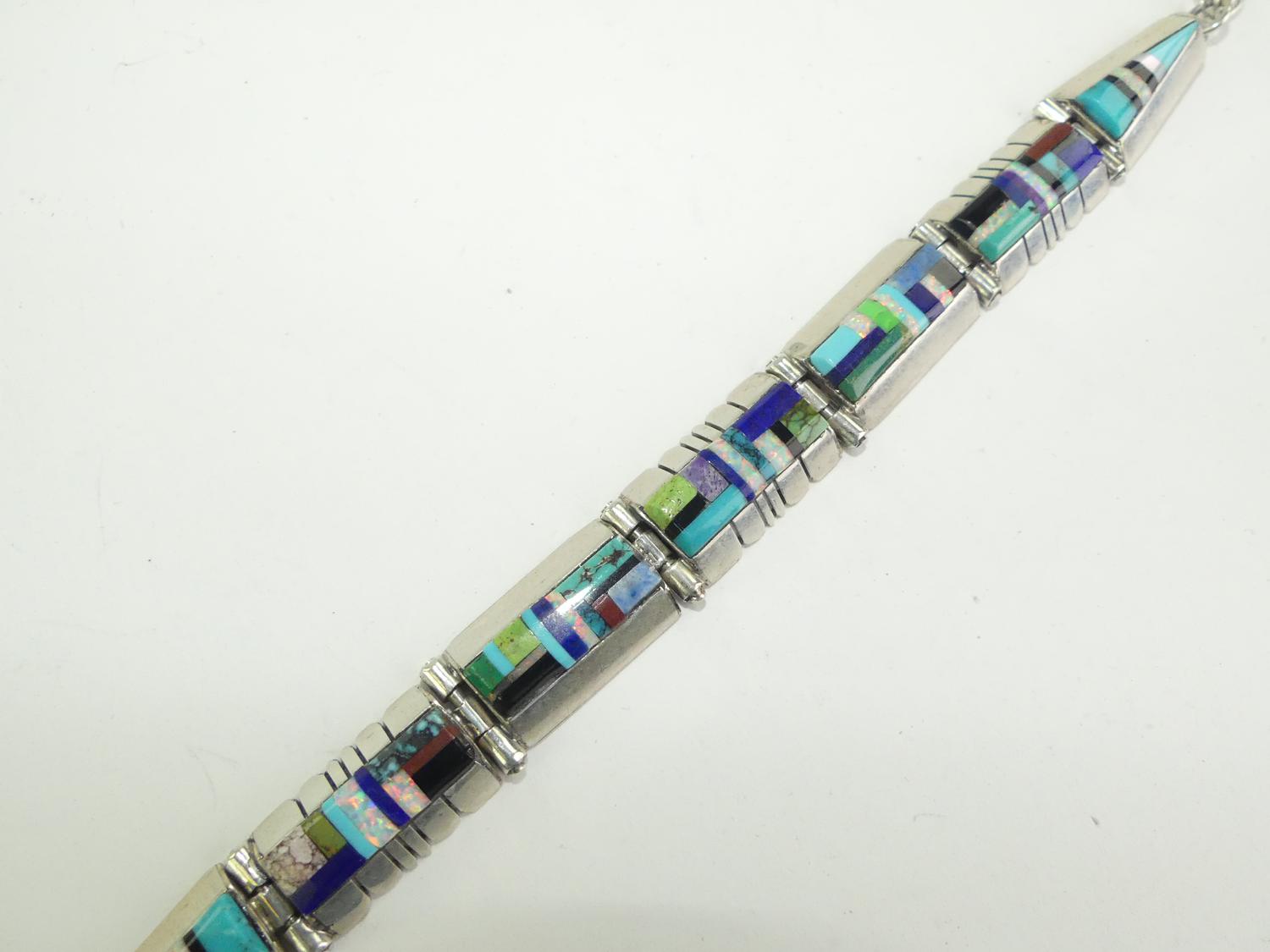 inlaid sterling silver bracelet, santa fe, length 8" signed silver ab