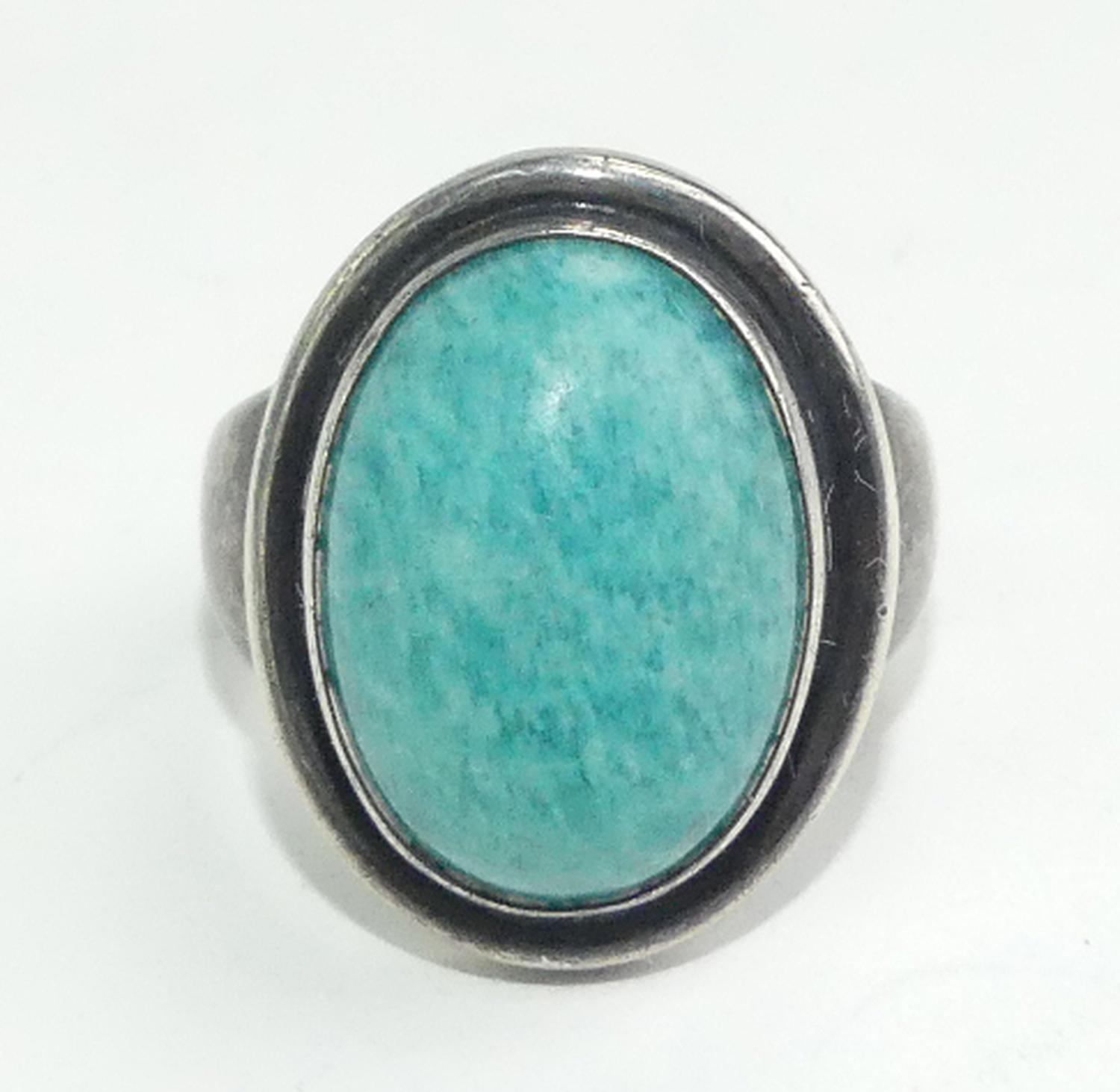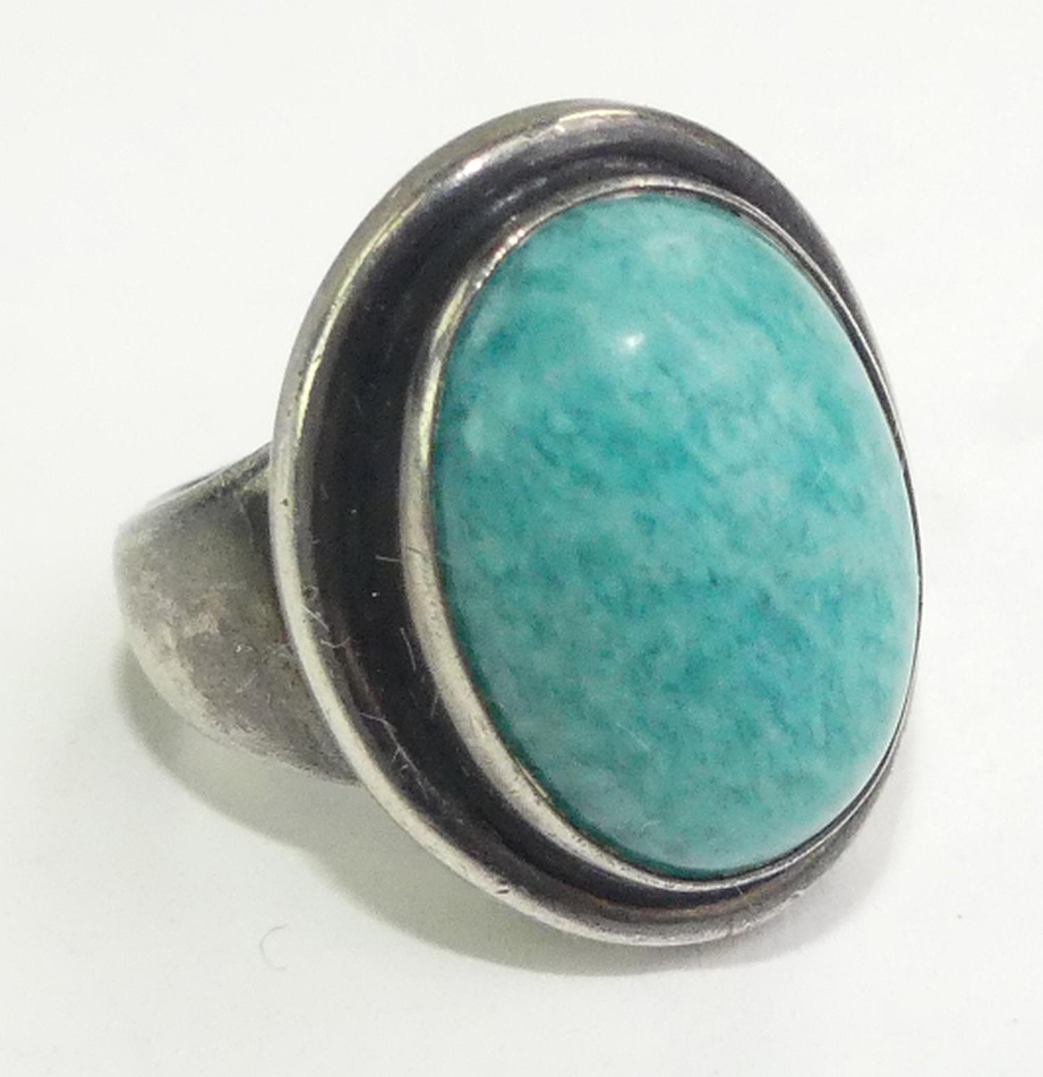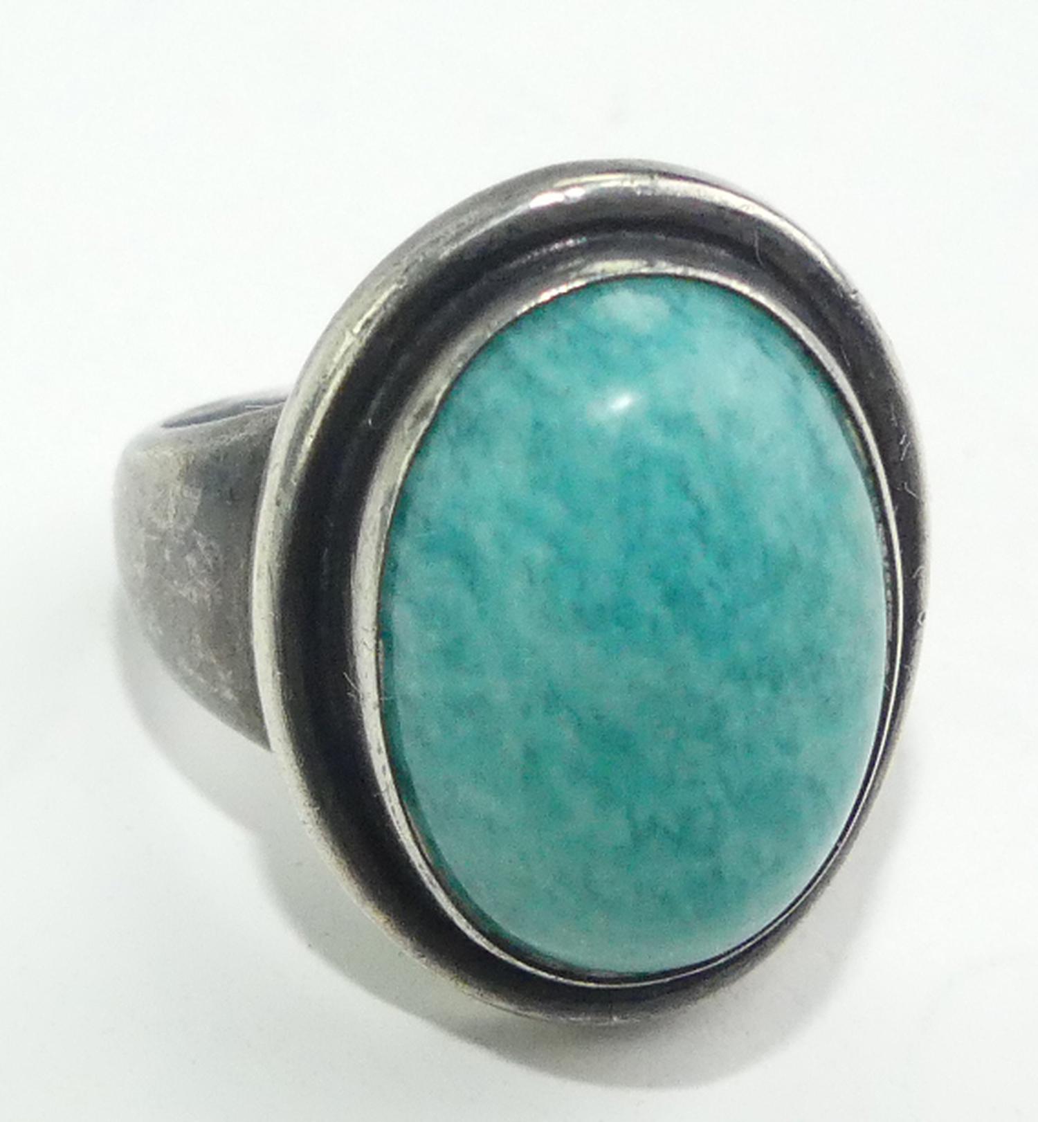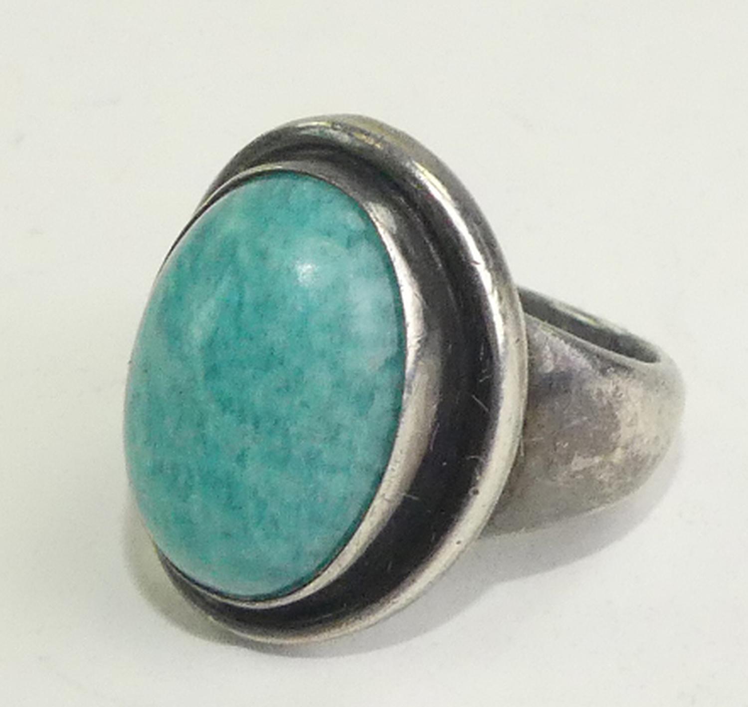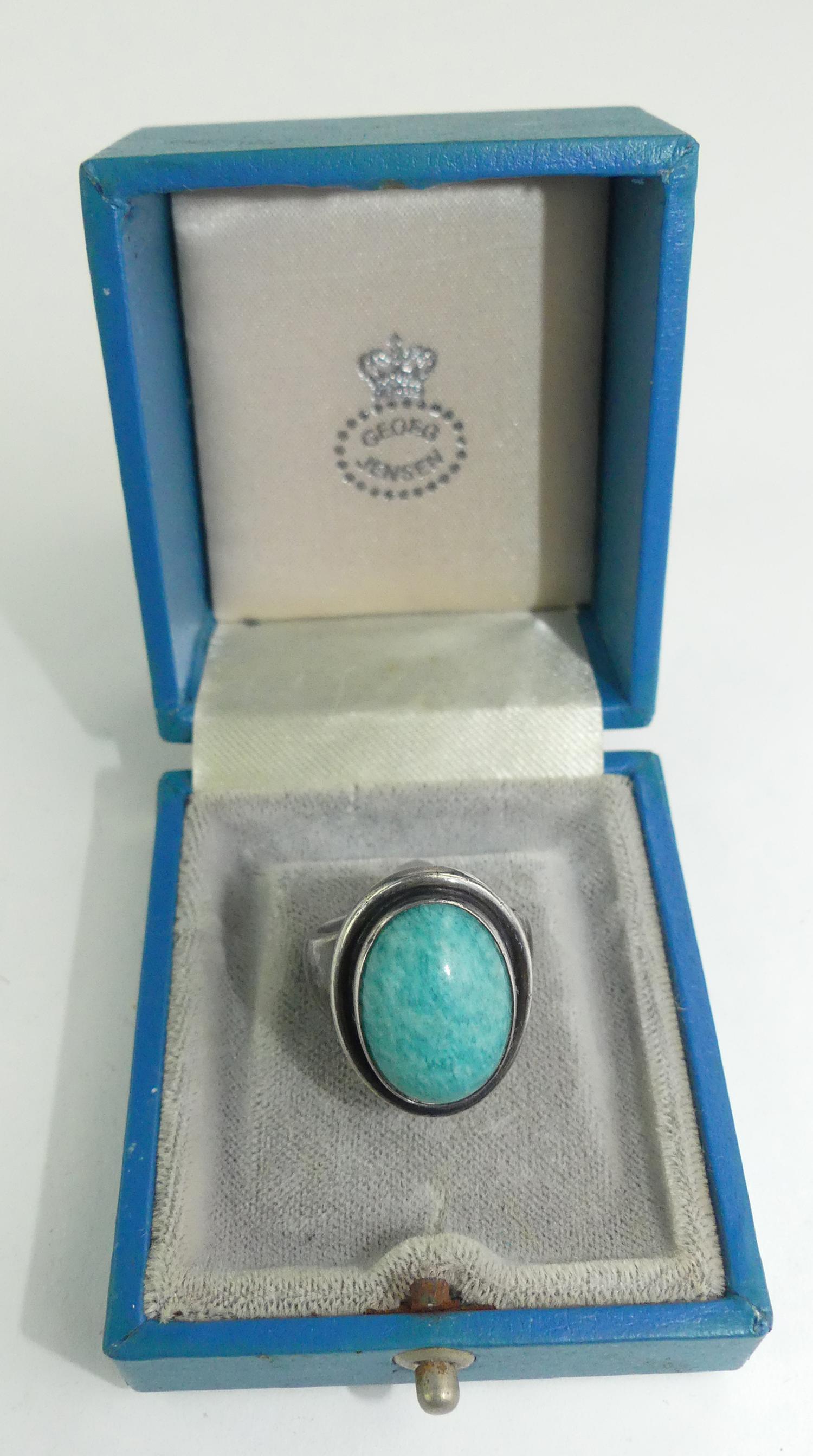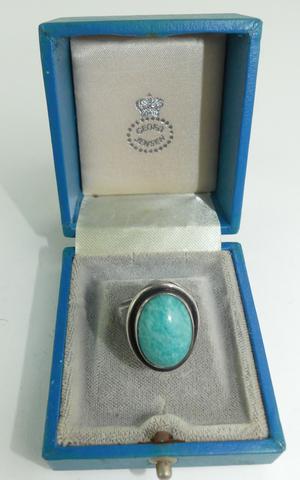 georg jensen sterling silver ring with amazonite, 46a, size 7 1/2, with box