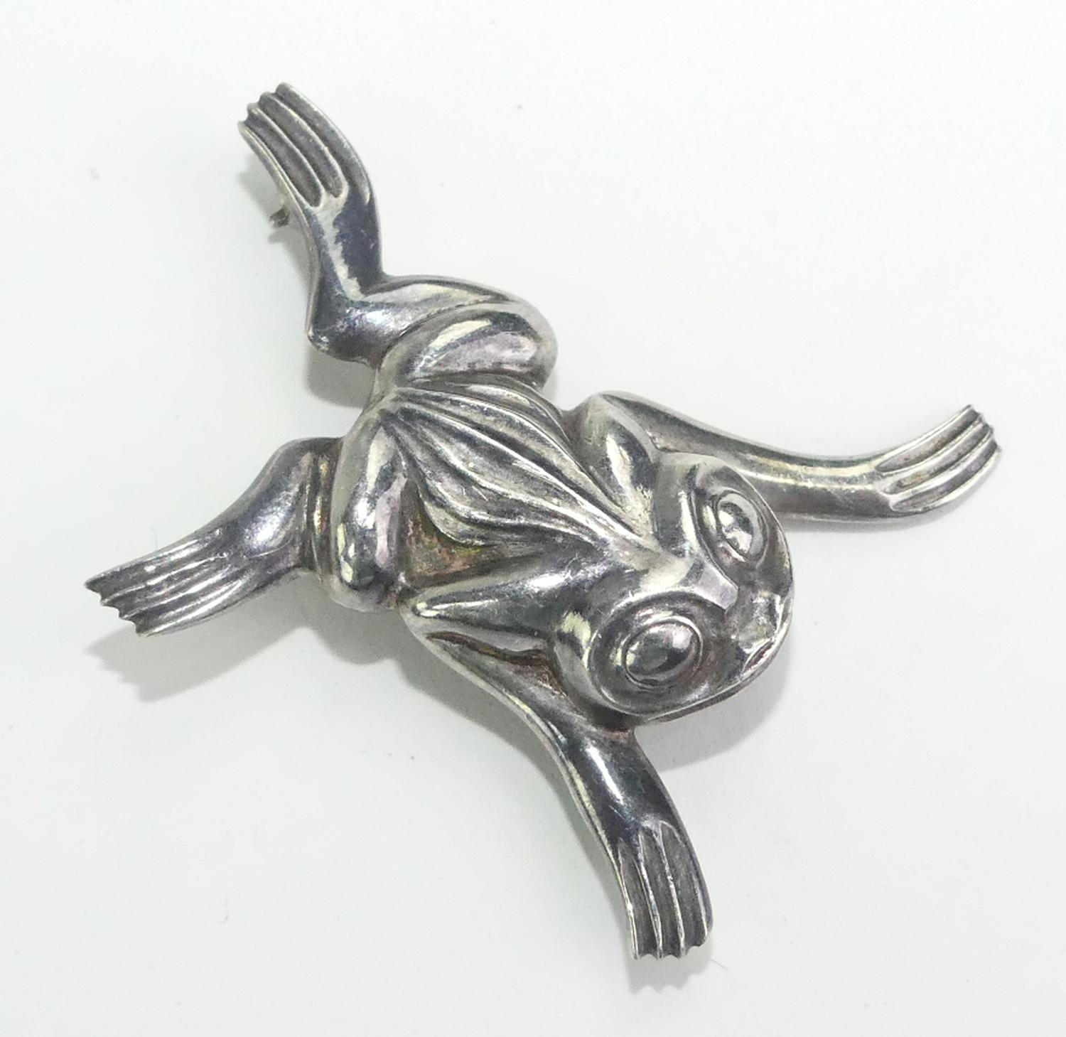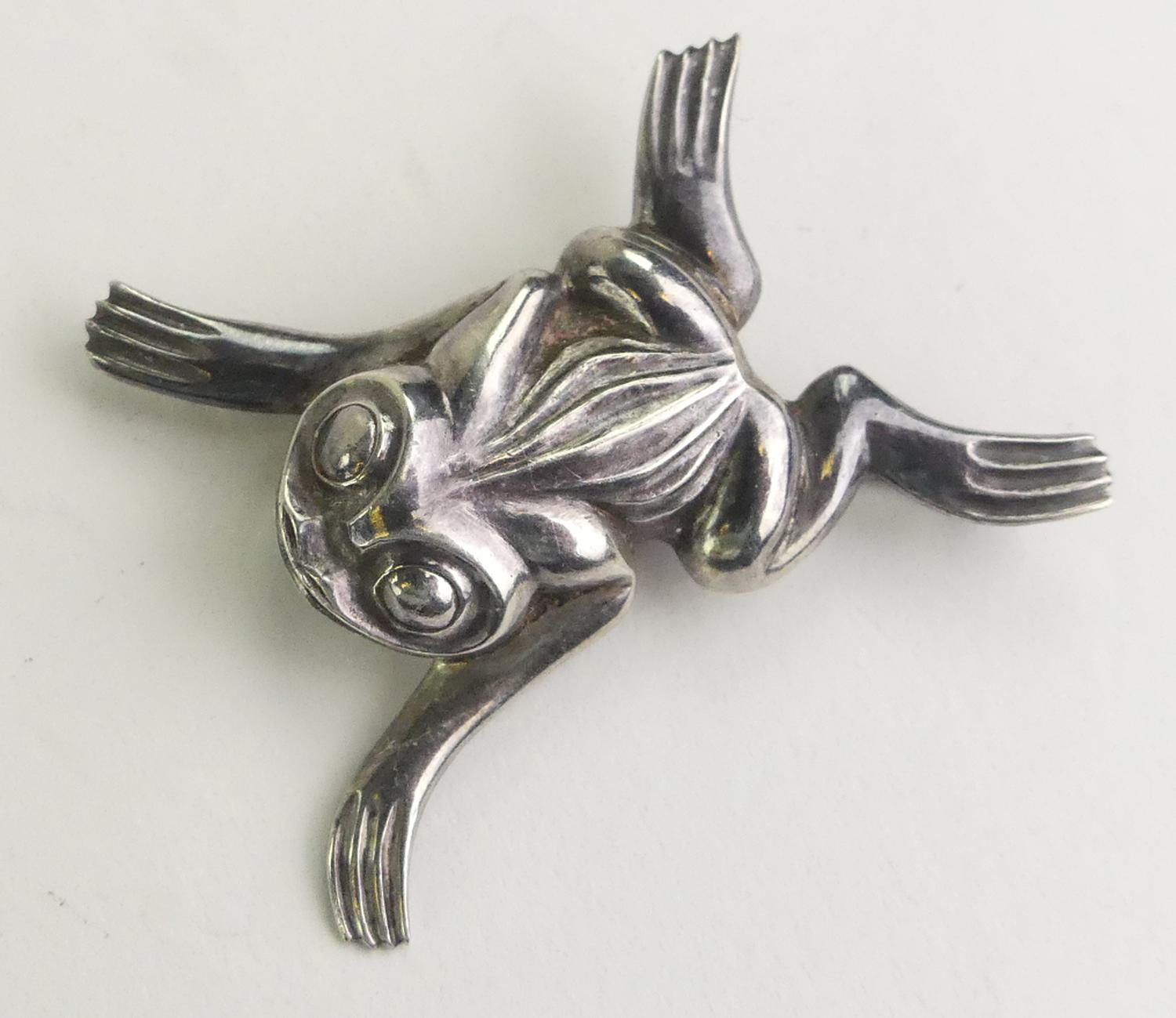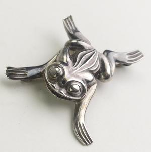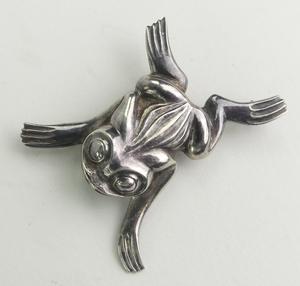 "frog brooch", by william (bill) reid(1920-1998), sterling silver, 1 1/2"