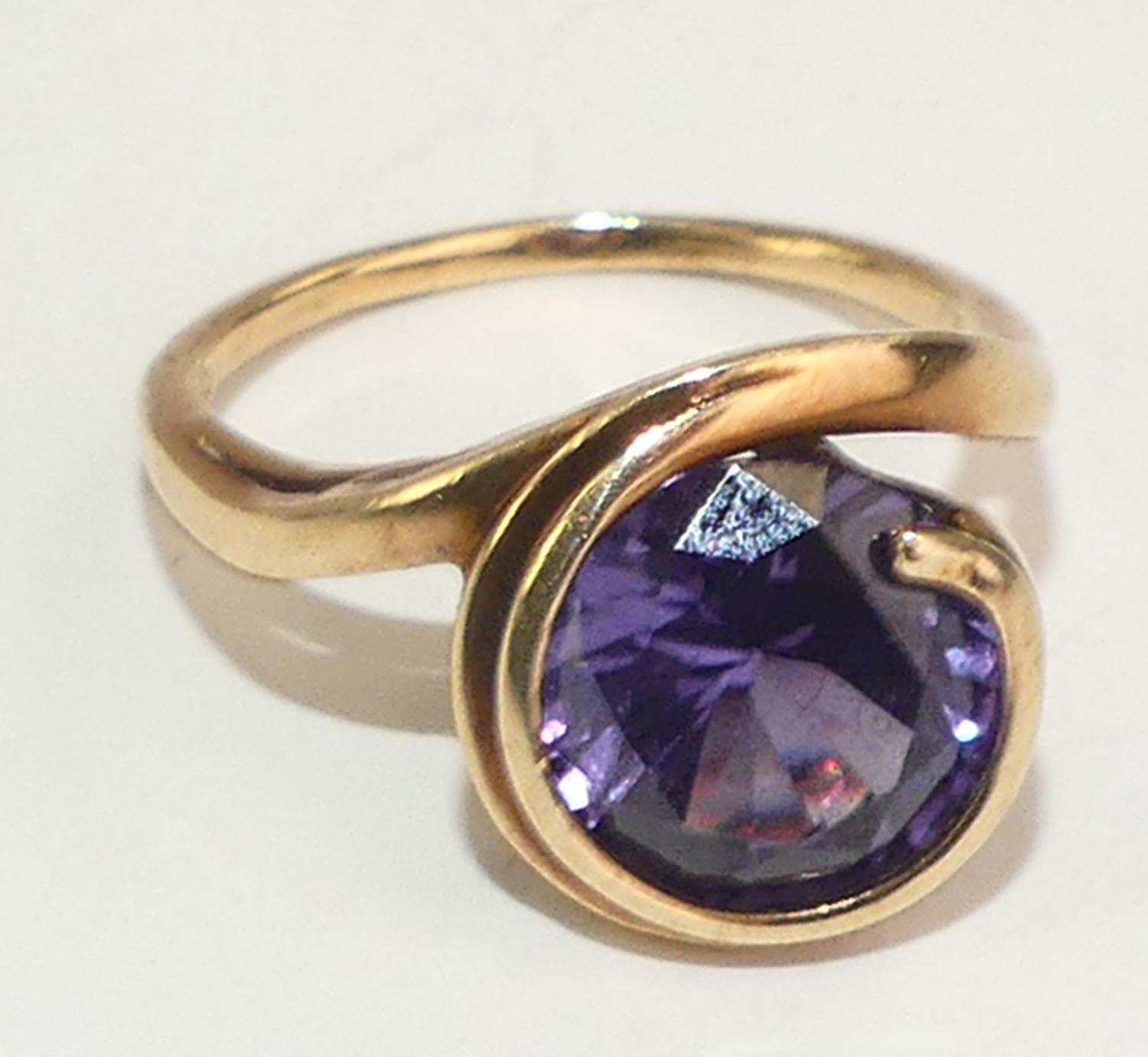 10k pink gold synthetic alexandrite ring, size 7 1/4