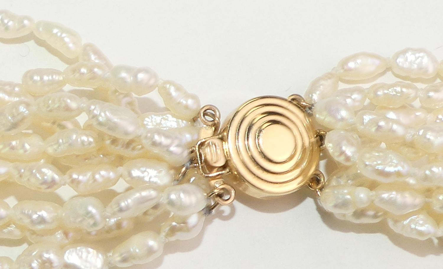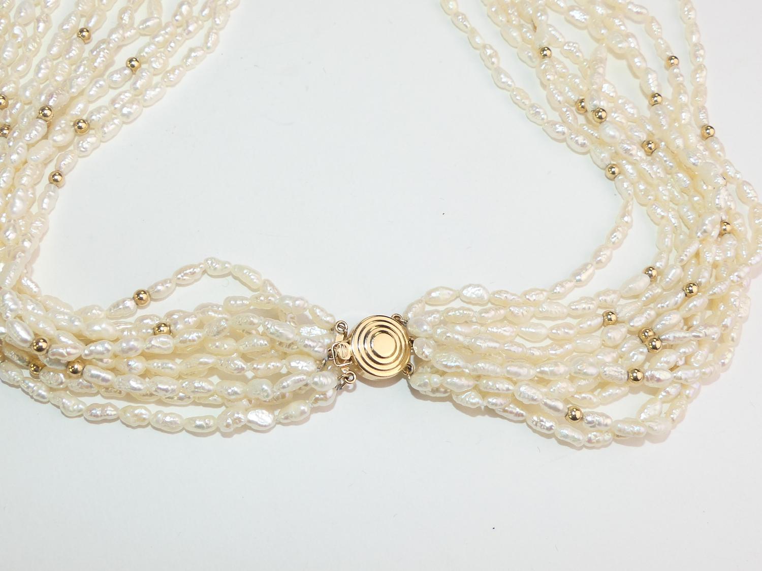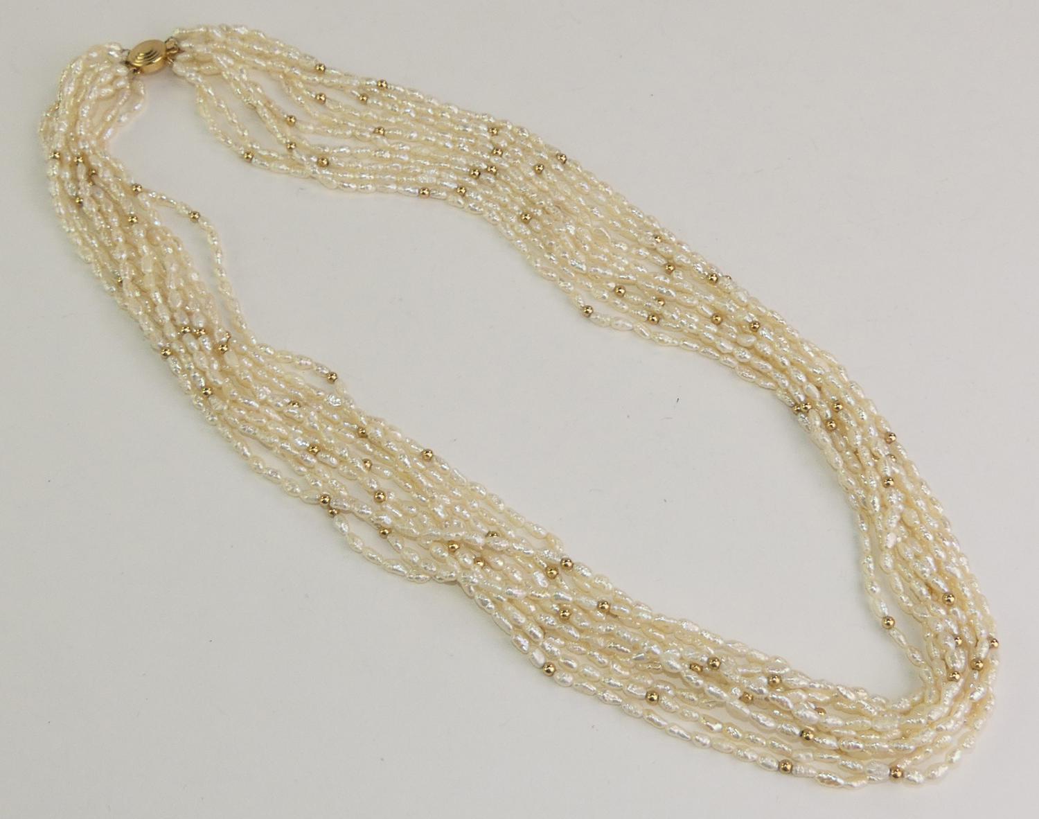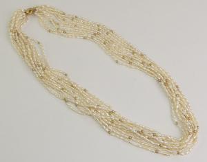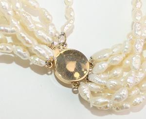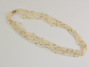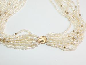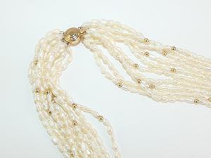 14k pink gold bead and rice pearl necklace, gold clasp, length 24"