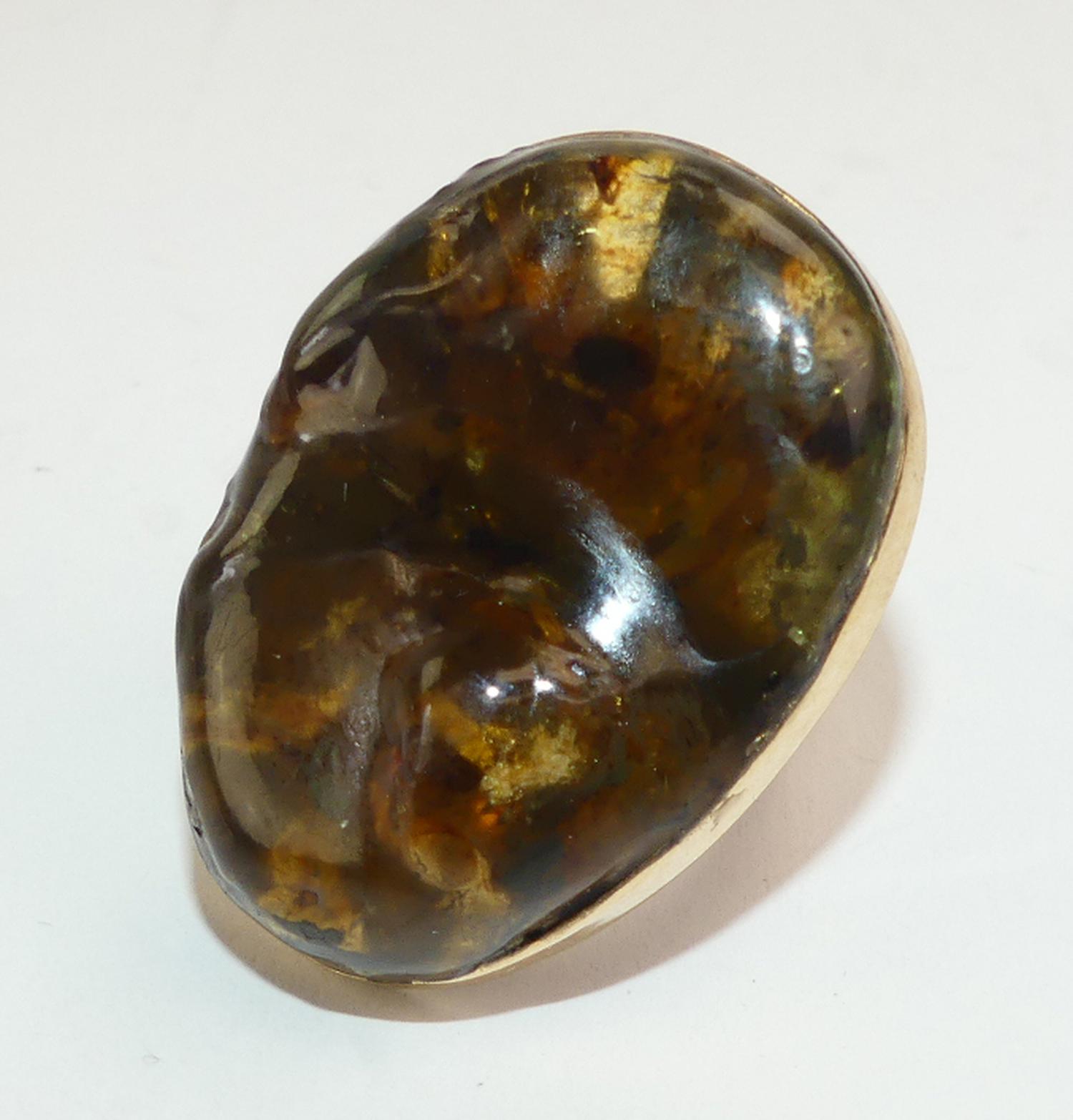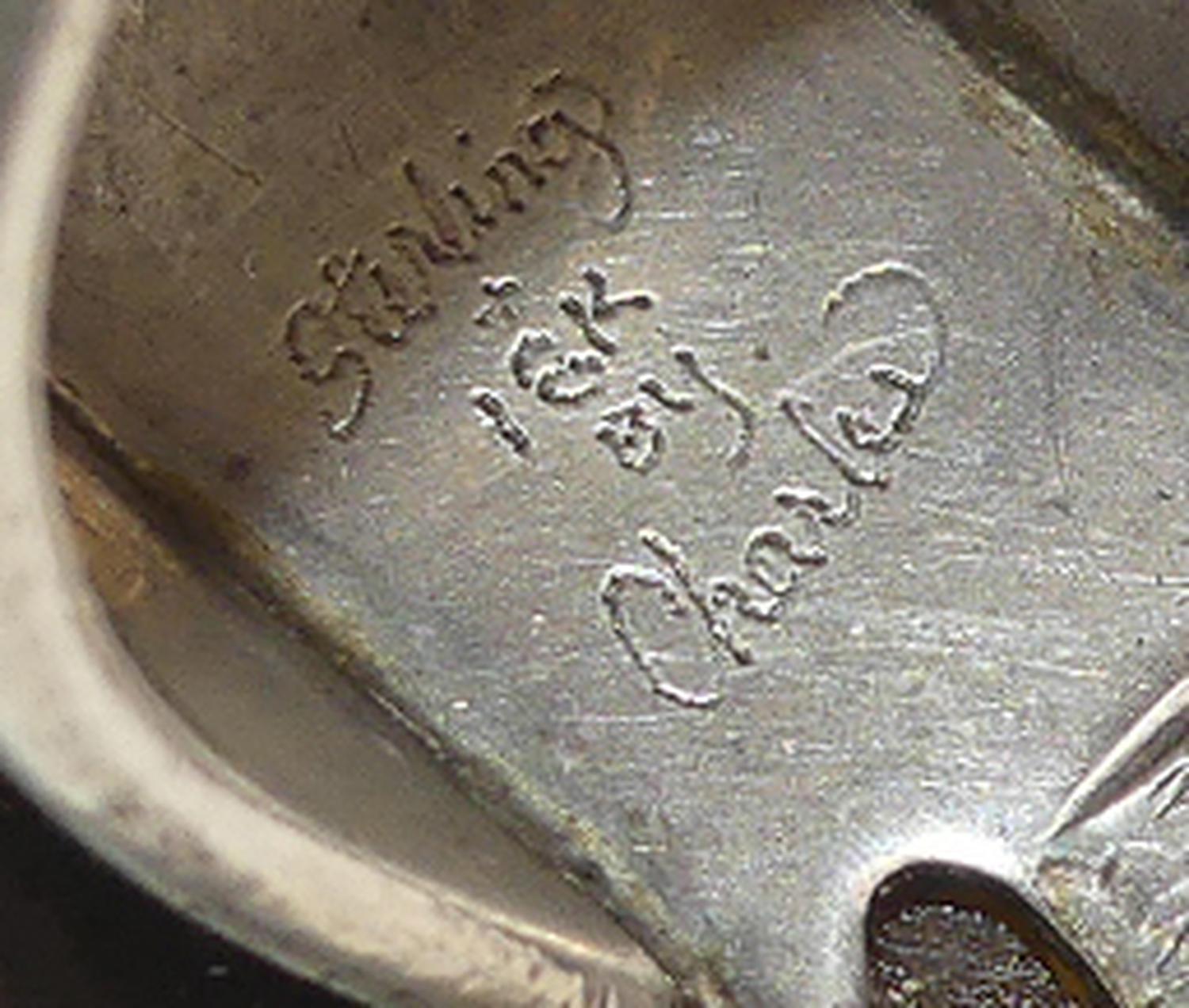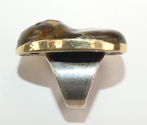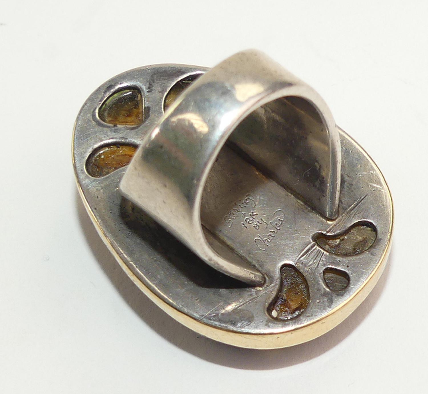 sterling silver 18k gold amber ring, signed by charles, size 7 1/2