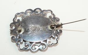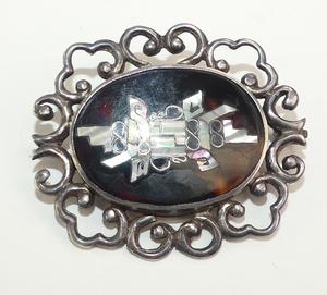 mexican sterling silver tortoise shell and abalone inlaid brooch, signed pgg, width 1 7/8"