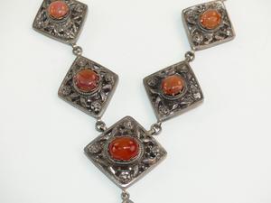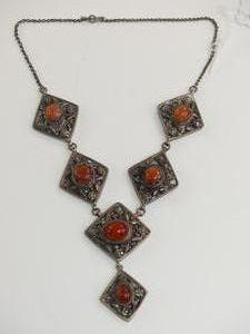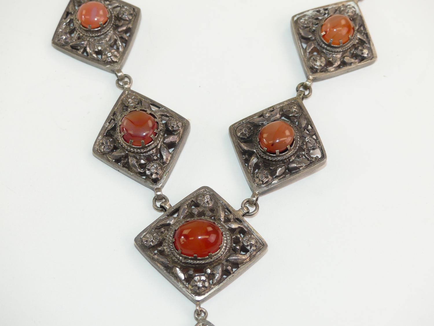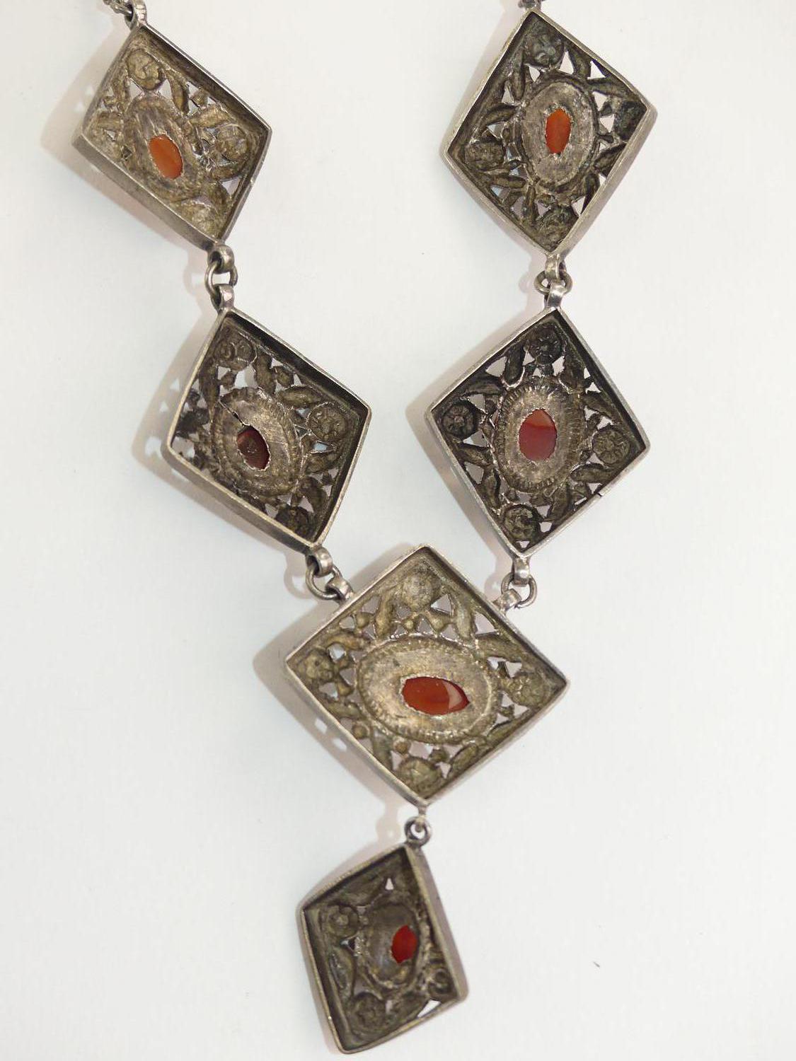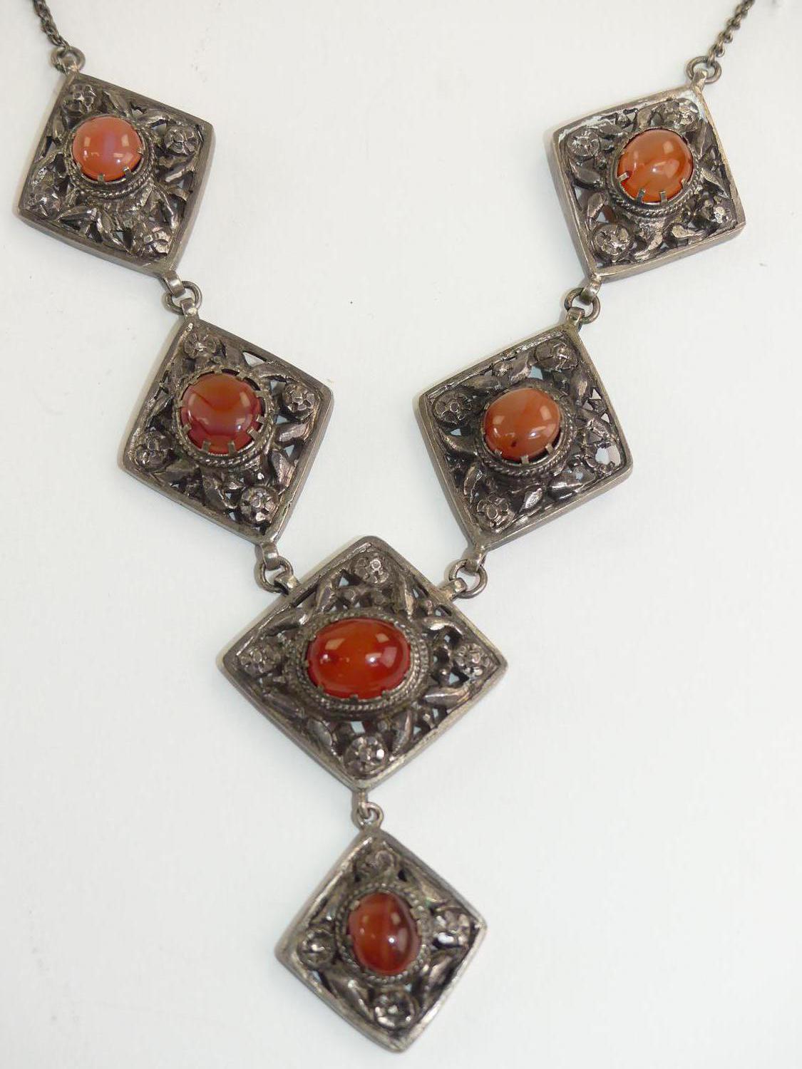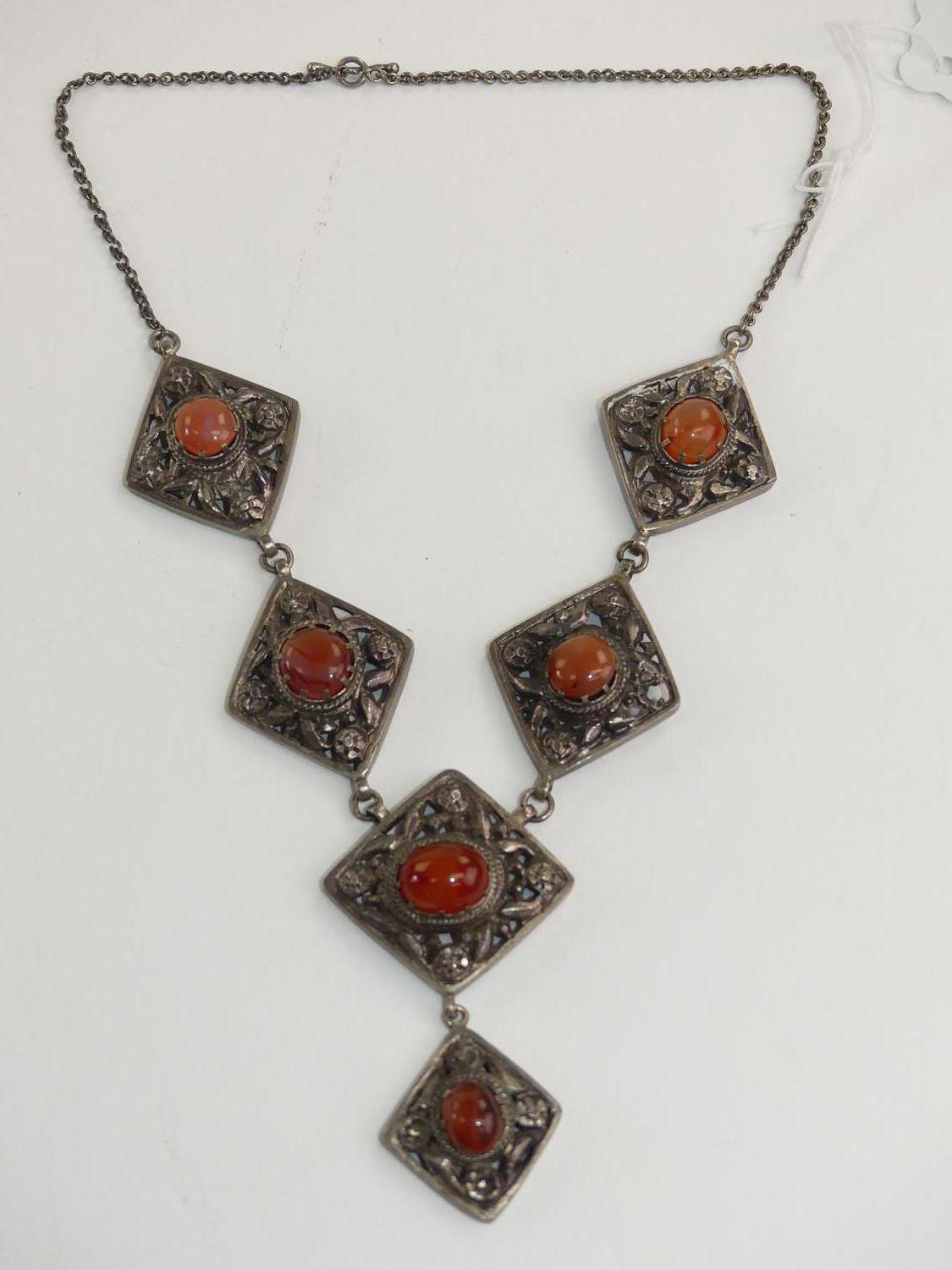 silver panel necklace set with agate cabachons, length 16"