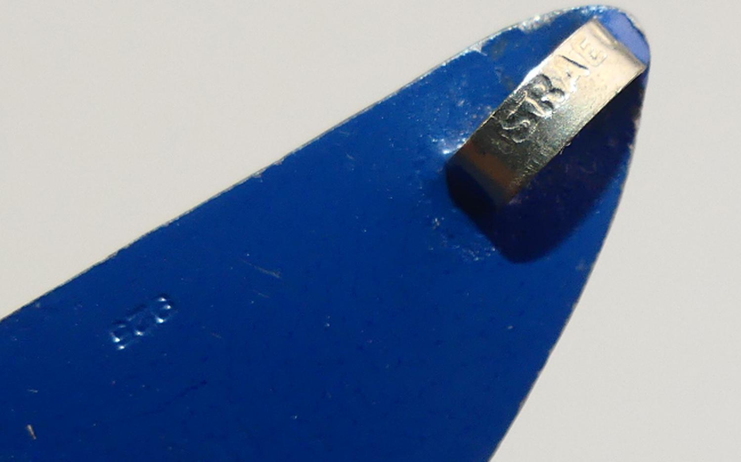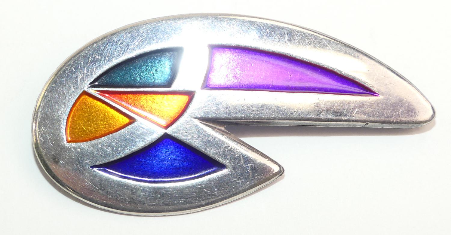 modernist enamel sterling silver brooch, signed isreal, 2 1/2"