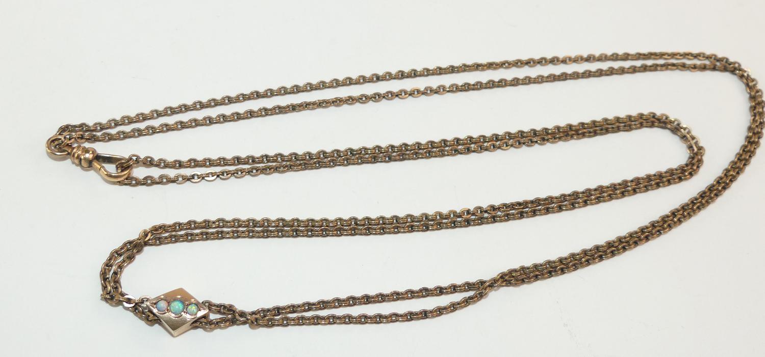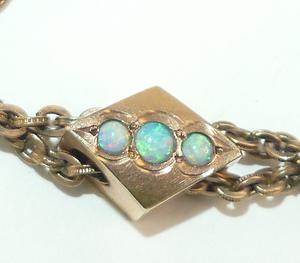 victorian ladies gold filled opal slider watch chain, c. a. m & co.