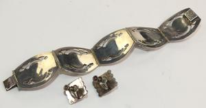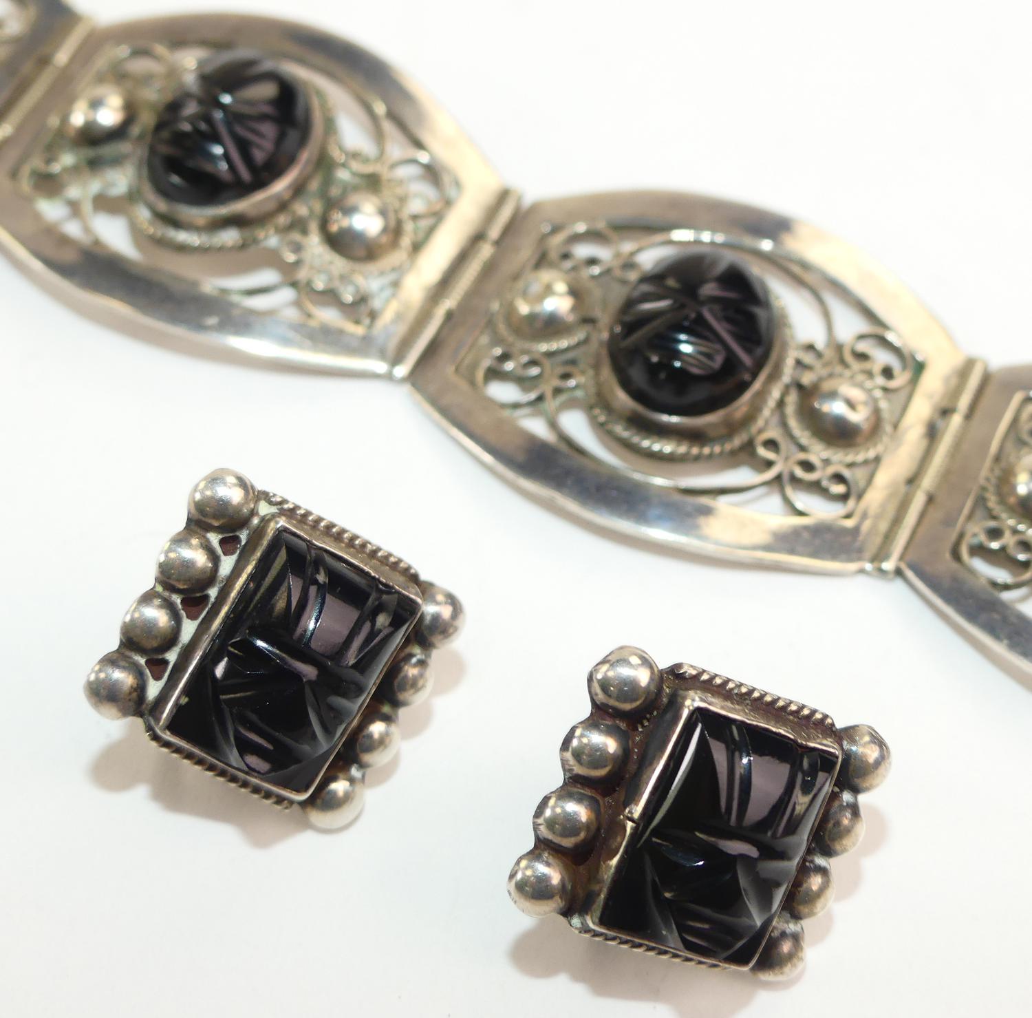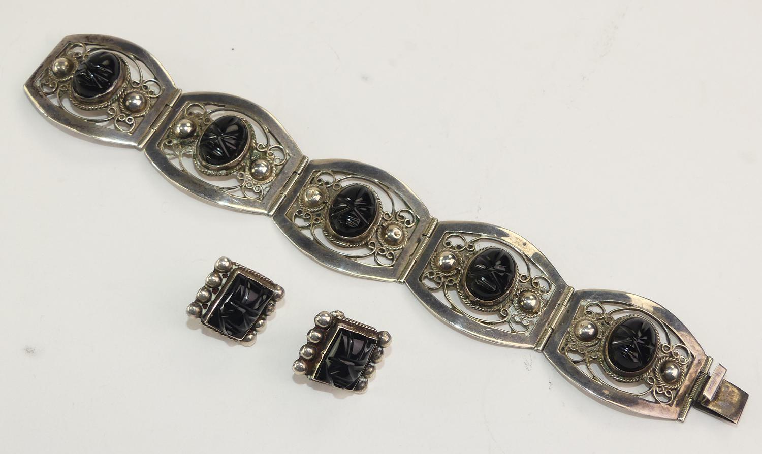 mexican sterling silver onyx bracelet and earrings hallmarked fsi, length of bracelet 7 1/4"