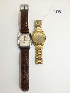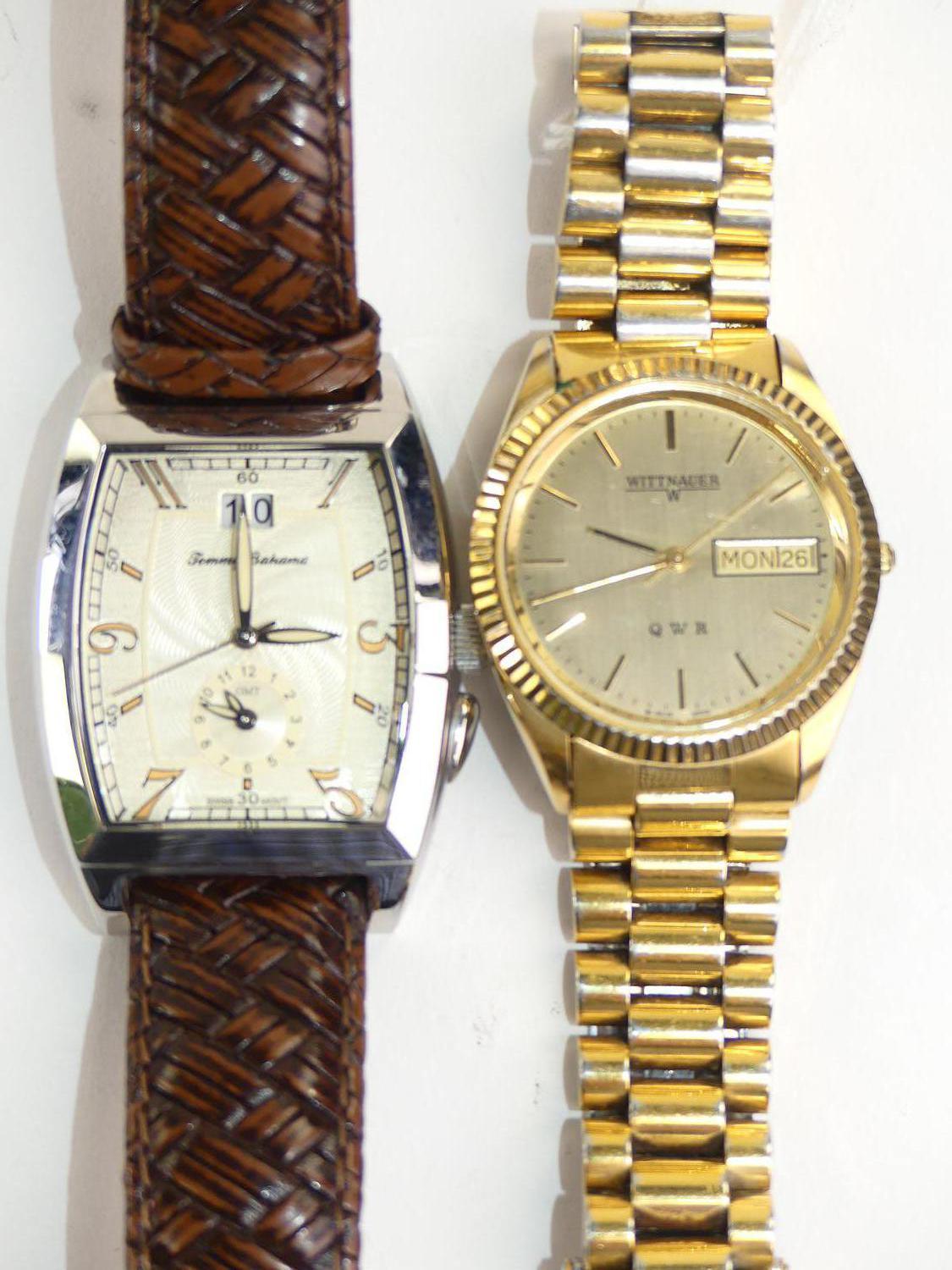 vintage gold plated wittnauer day/date, with tommy bahamas wristwatch