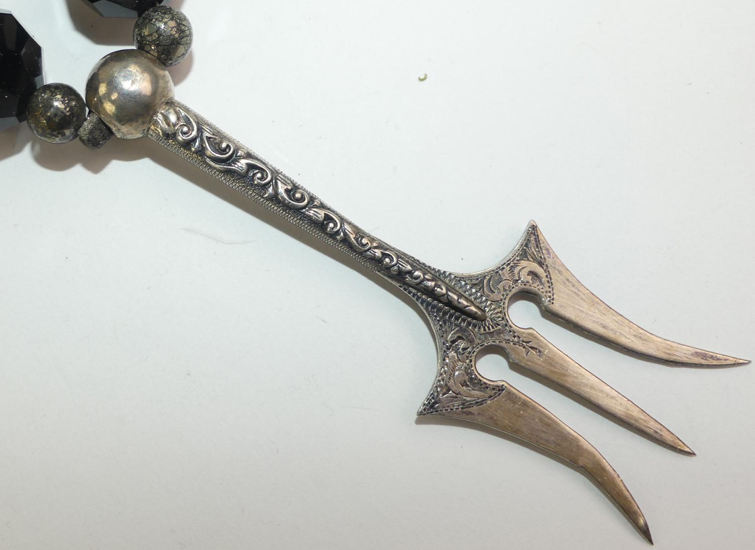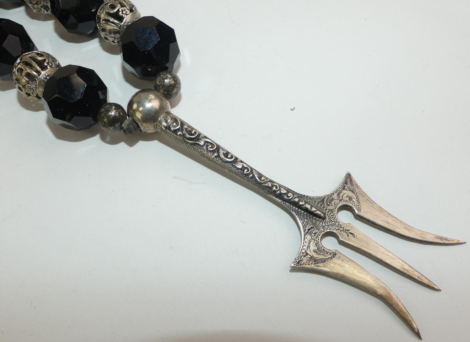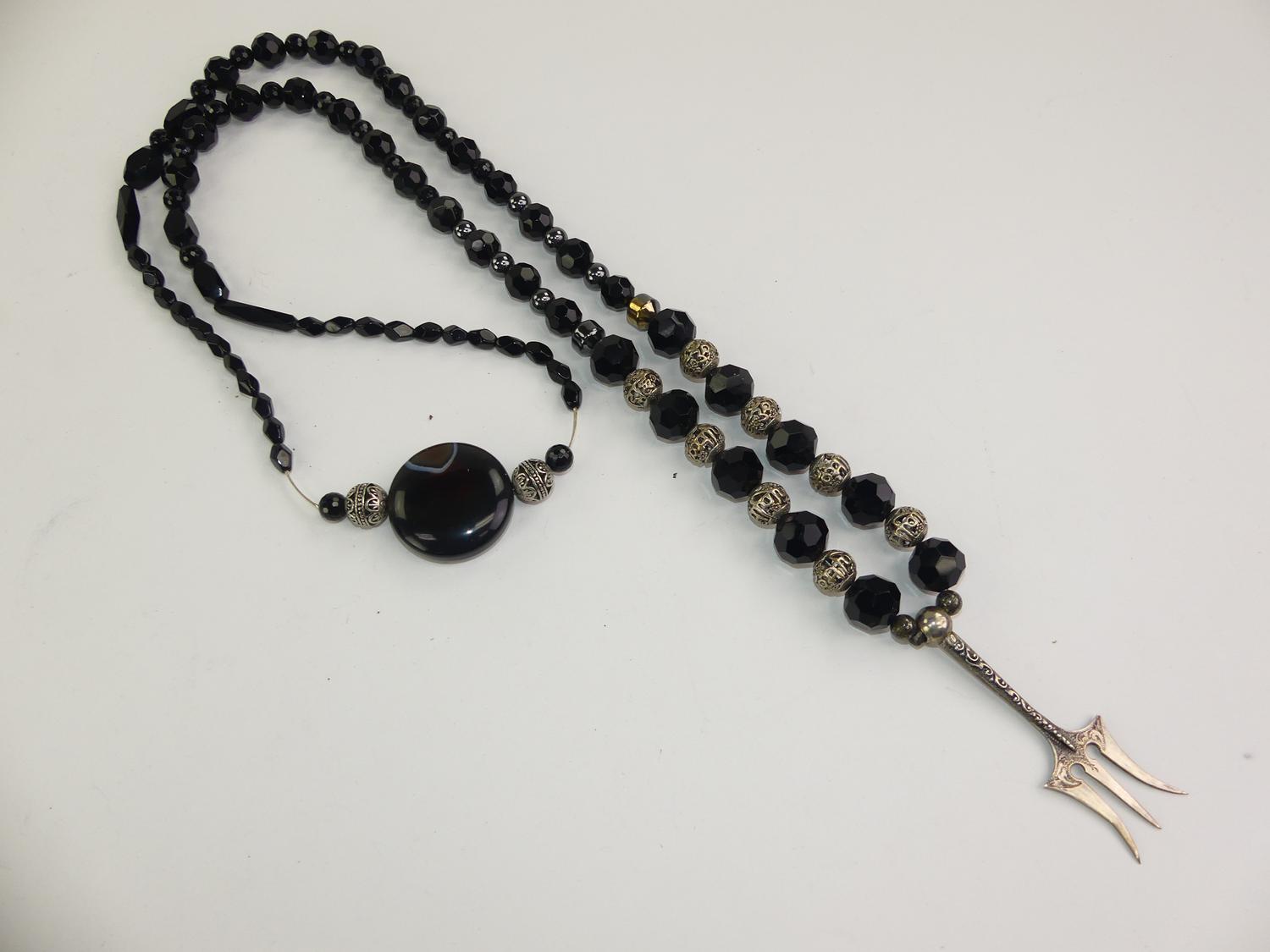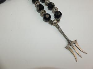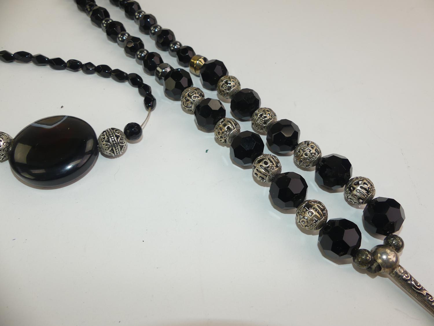 handmade 50" long facetted onyx sterling silver pendant, sanskrit bead necklace