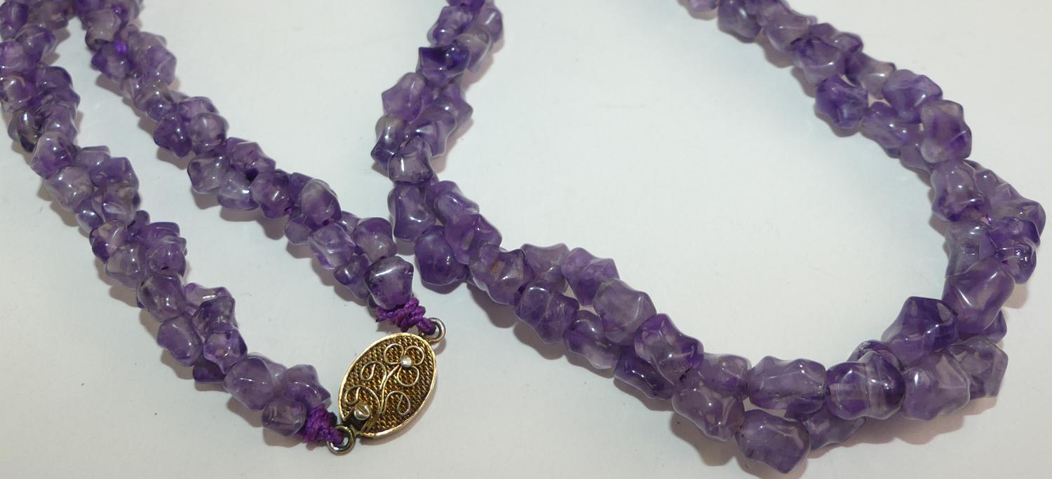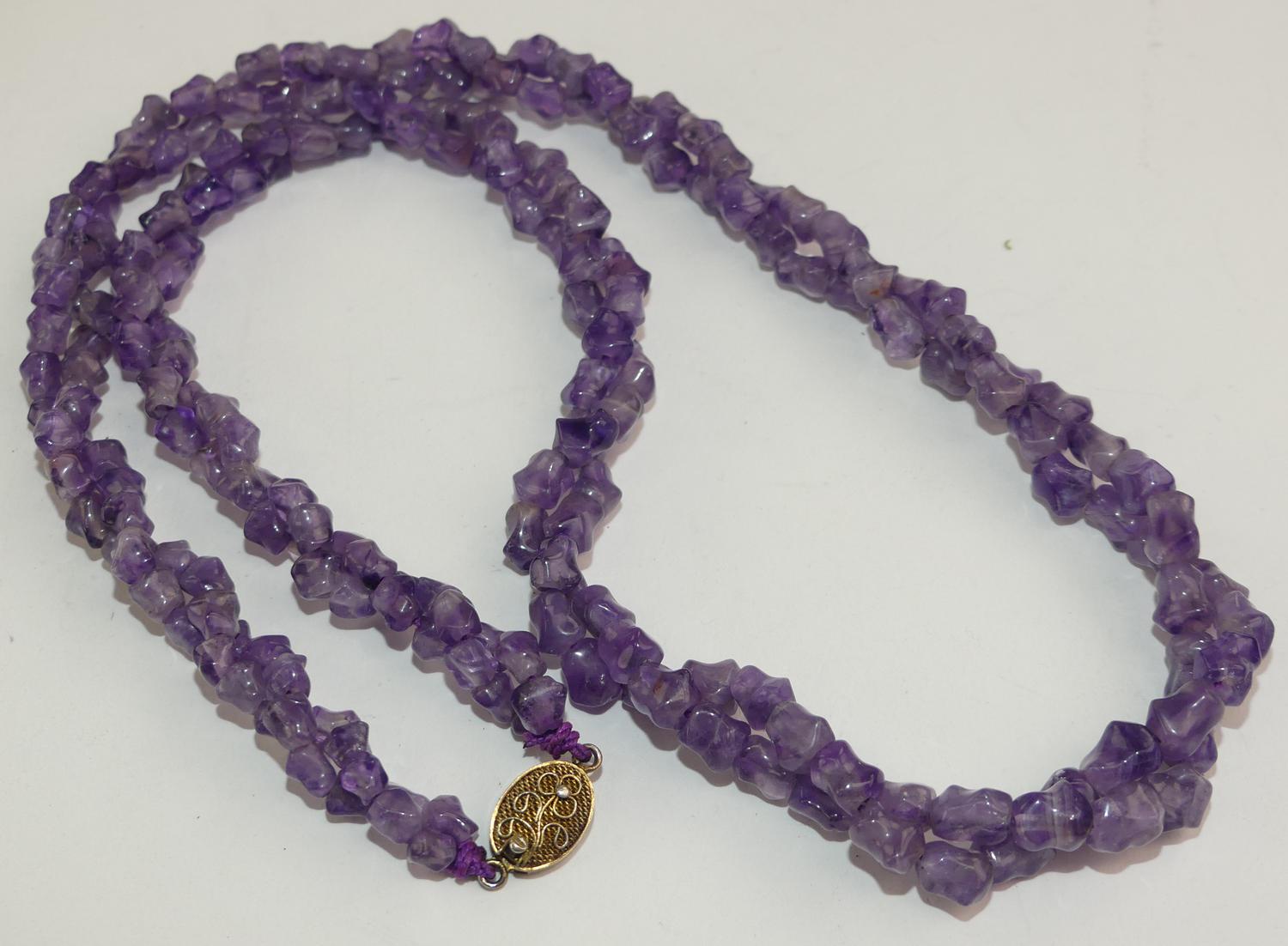 tumbled amethyst necklace, with silver vermeil clasp, length 23"