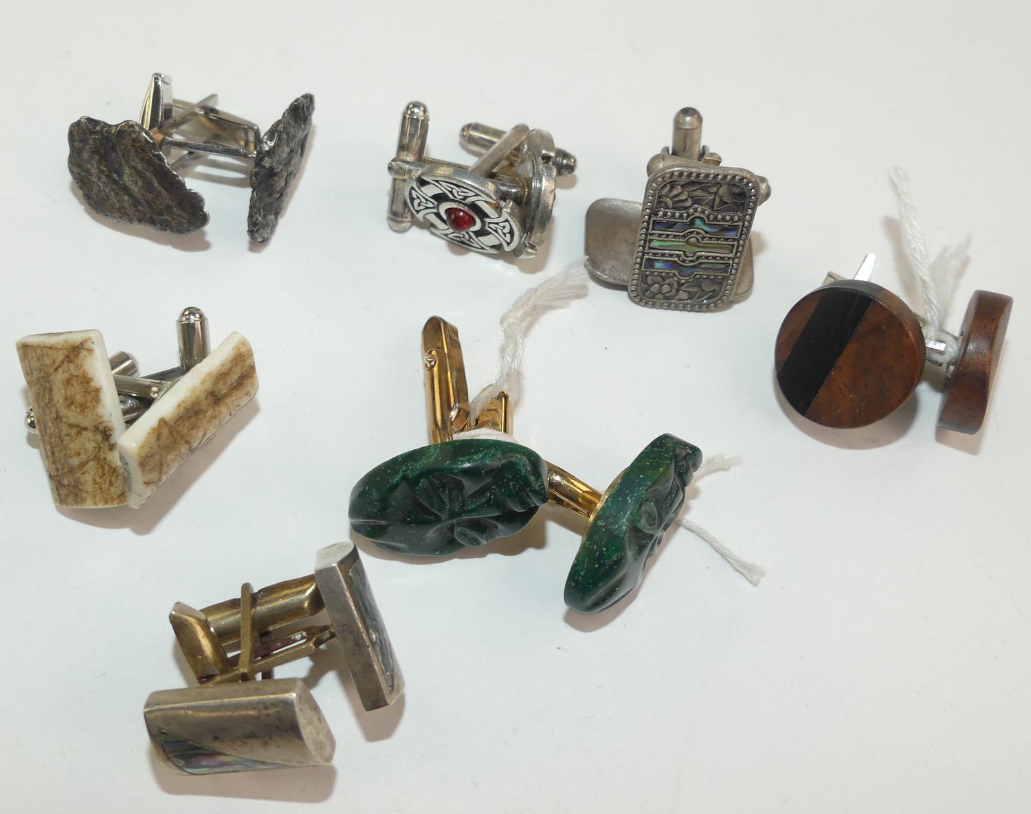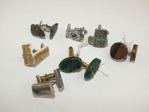 lot of 7 pairs of cufflinks, one alpaca, one meteorite stone