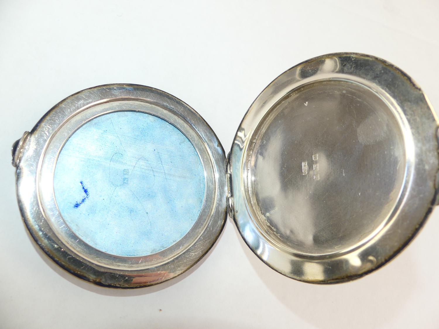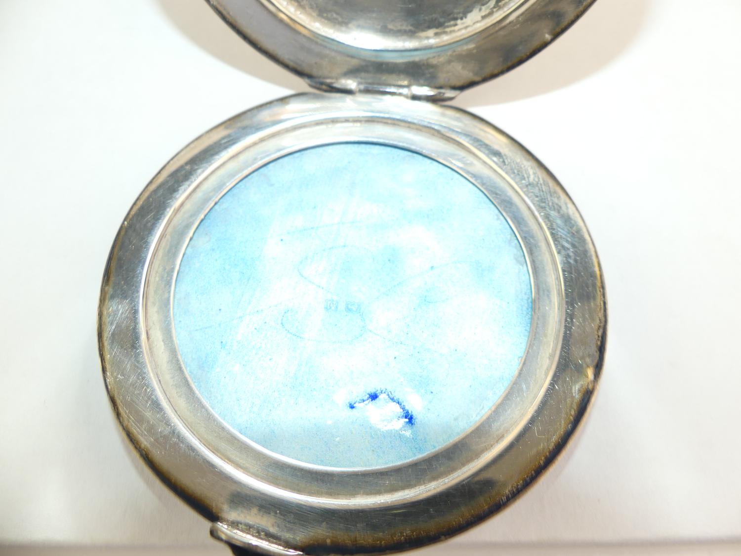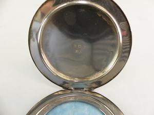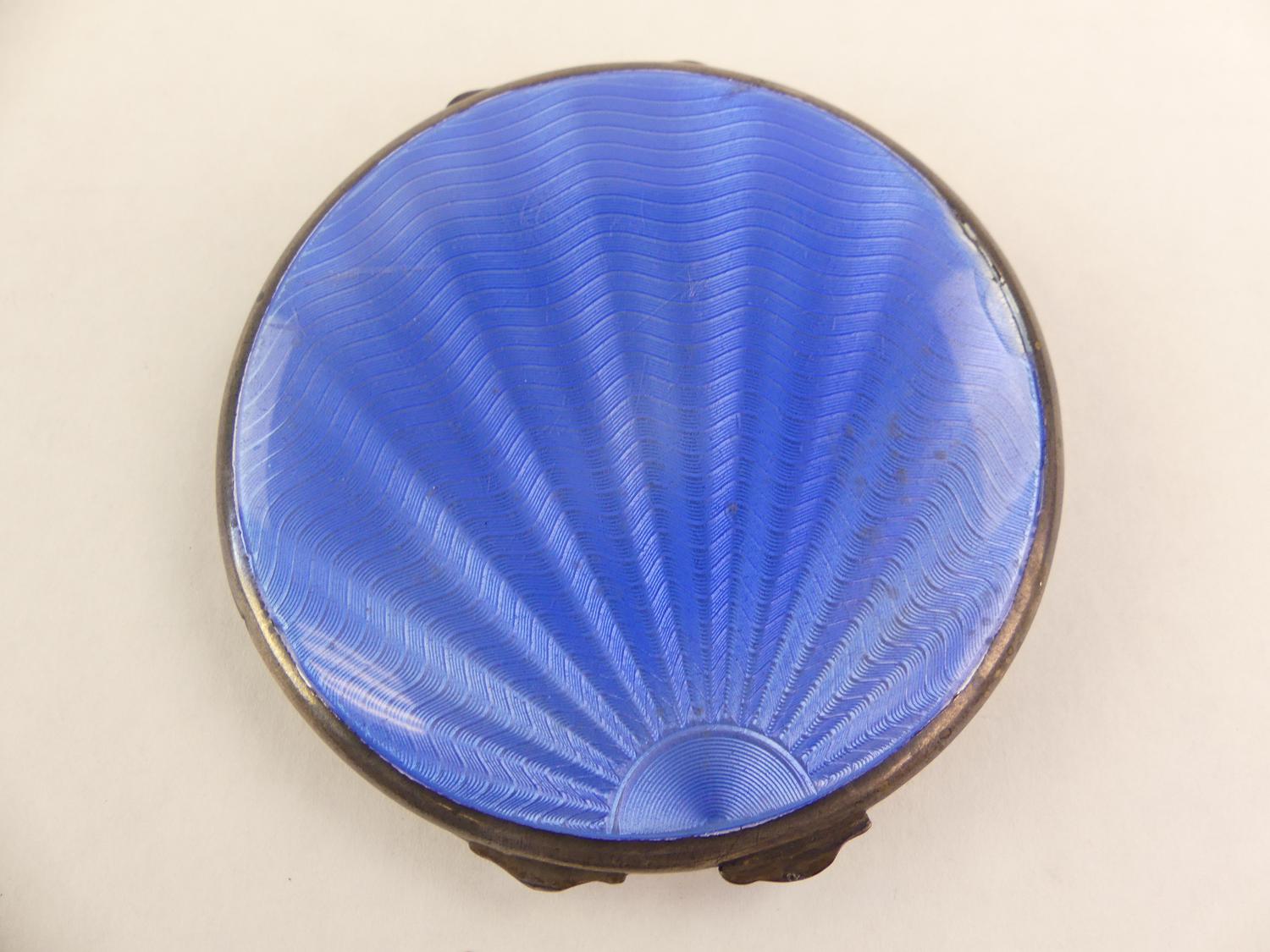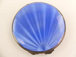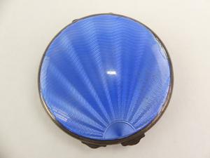 english hallmarked isg sterling silver blue guilloche enamel compact, 3", weighing approx 70grams