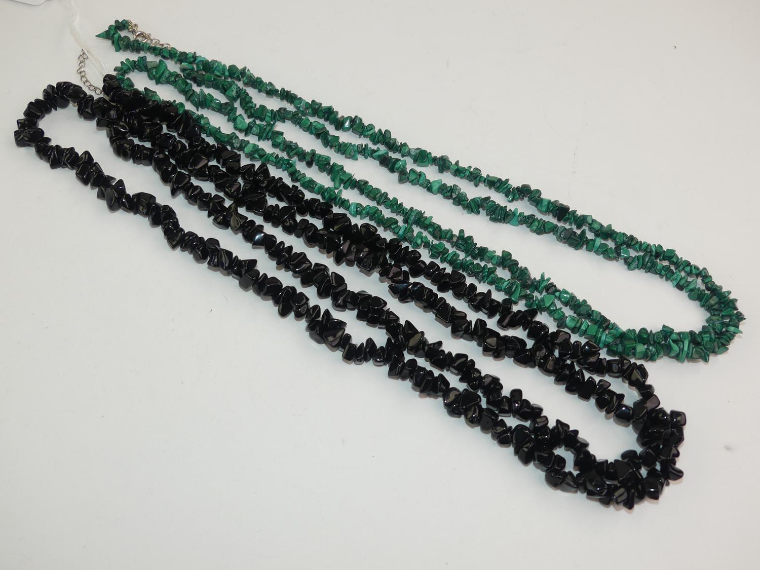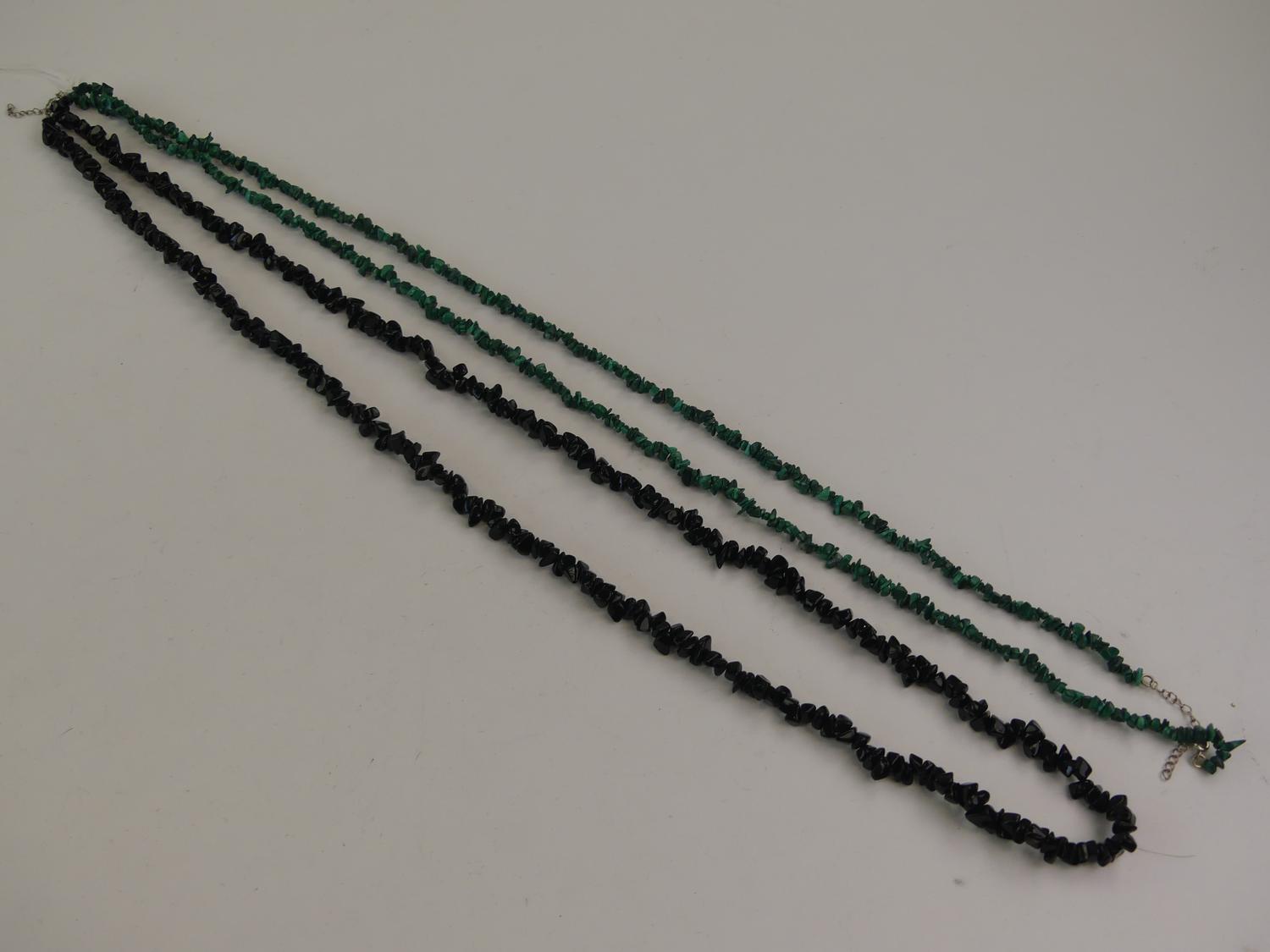 tumbled malachite bead necklace with onyx bead necklace, 42"