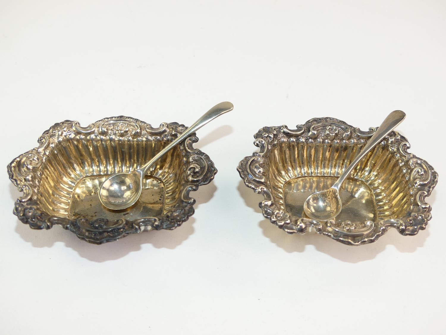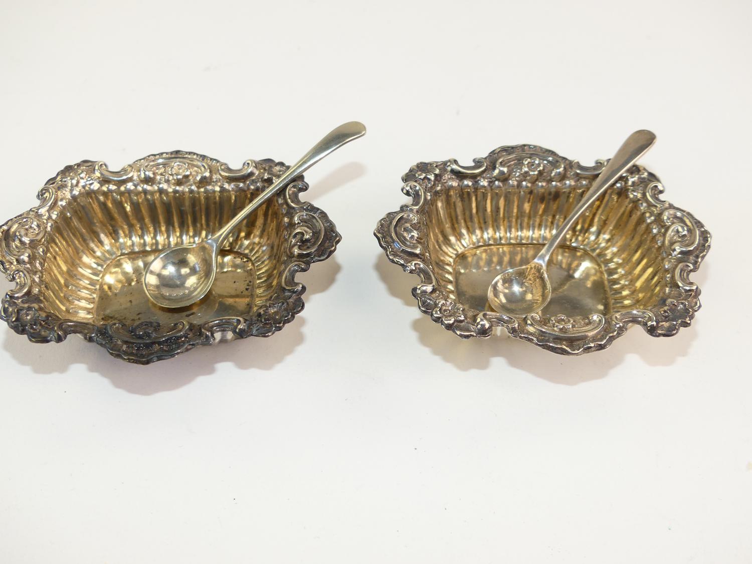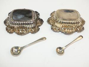 pair of sterling silver salts and spoons, weighable silver 23 grams