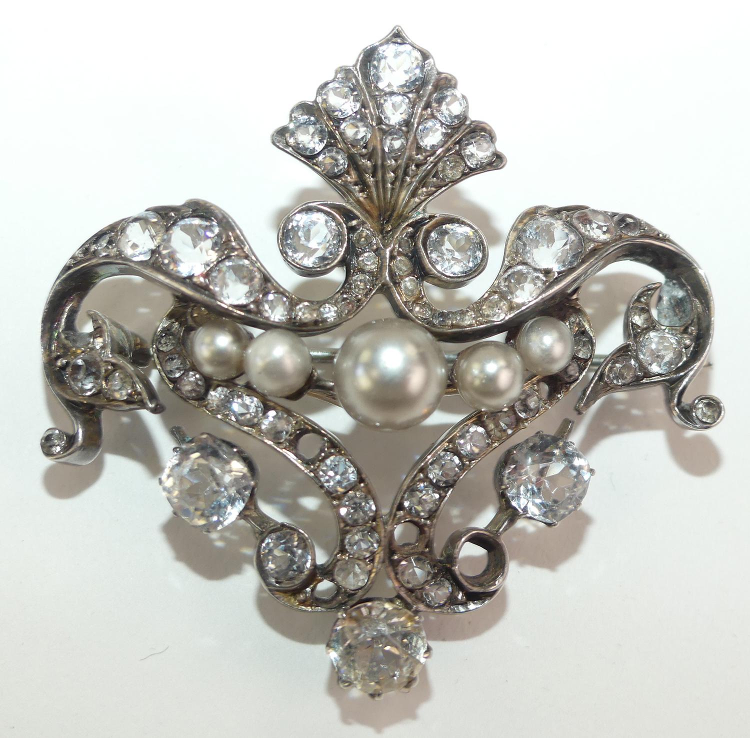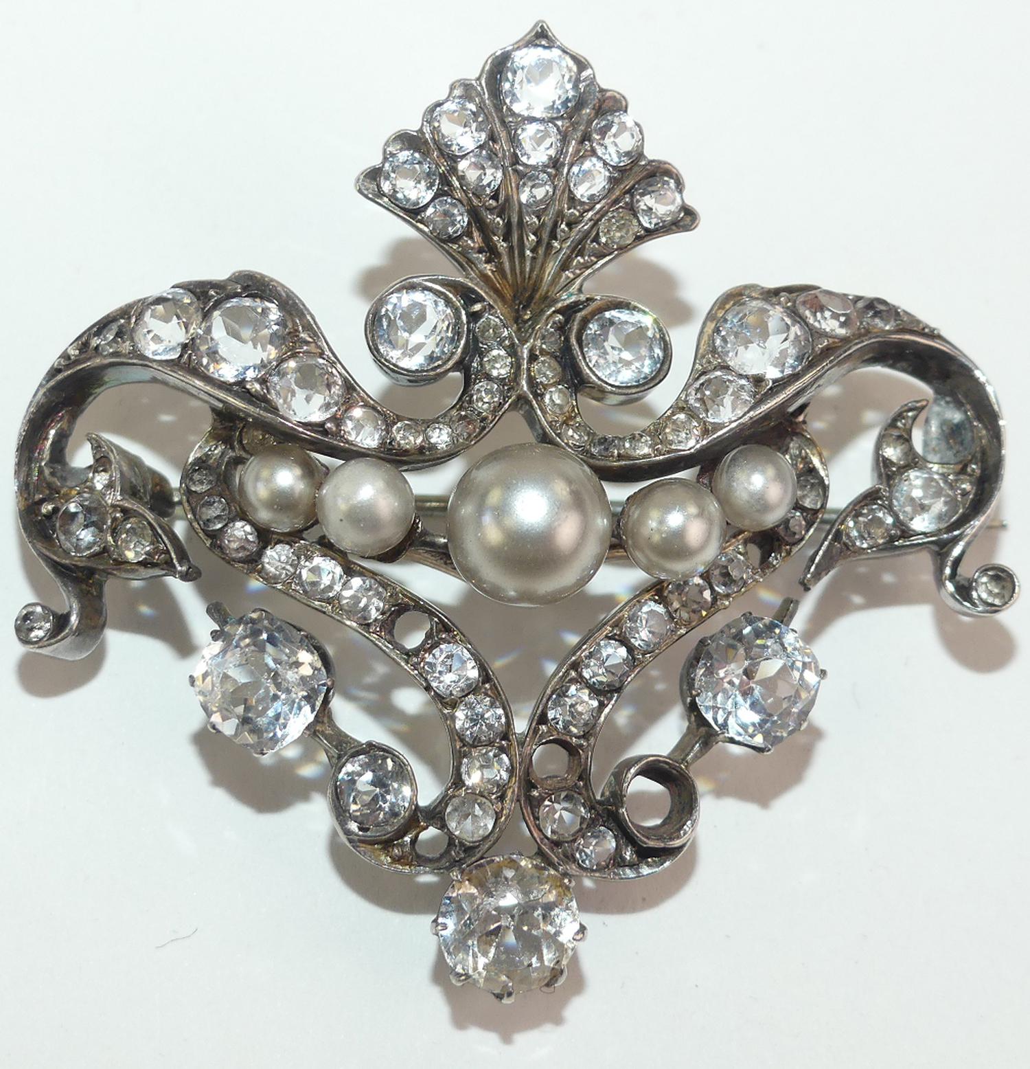 victorian silver french paste brooch with faux pearls