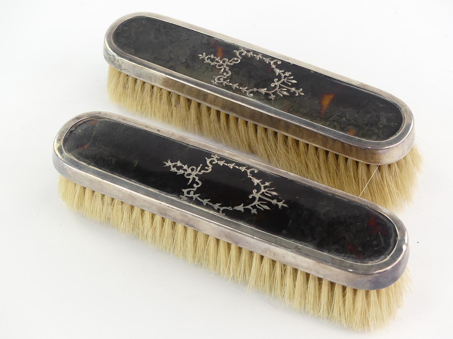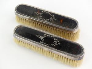 pair of antique sterling silver and tortoise shell mounted clothes brushes